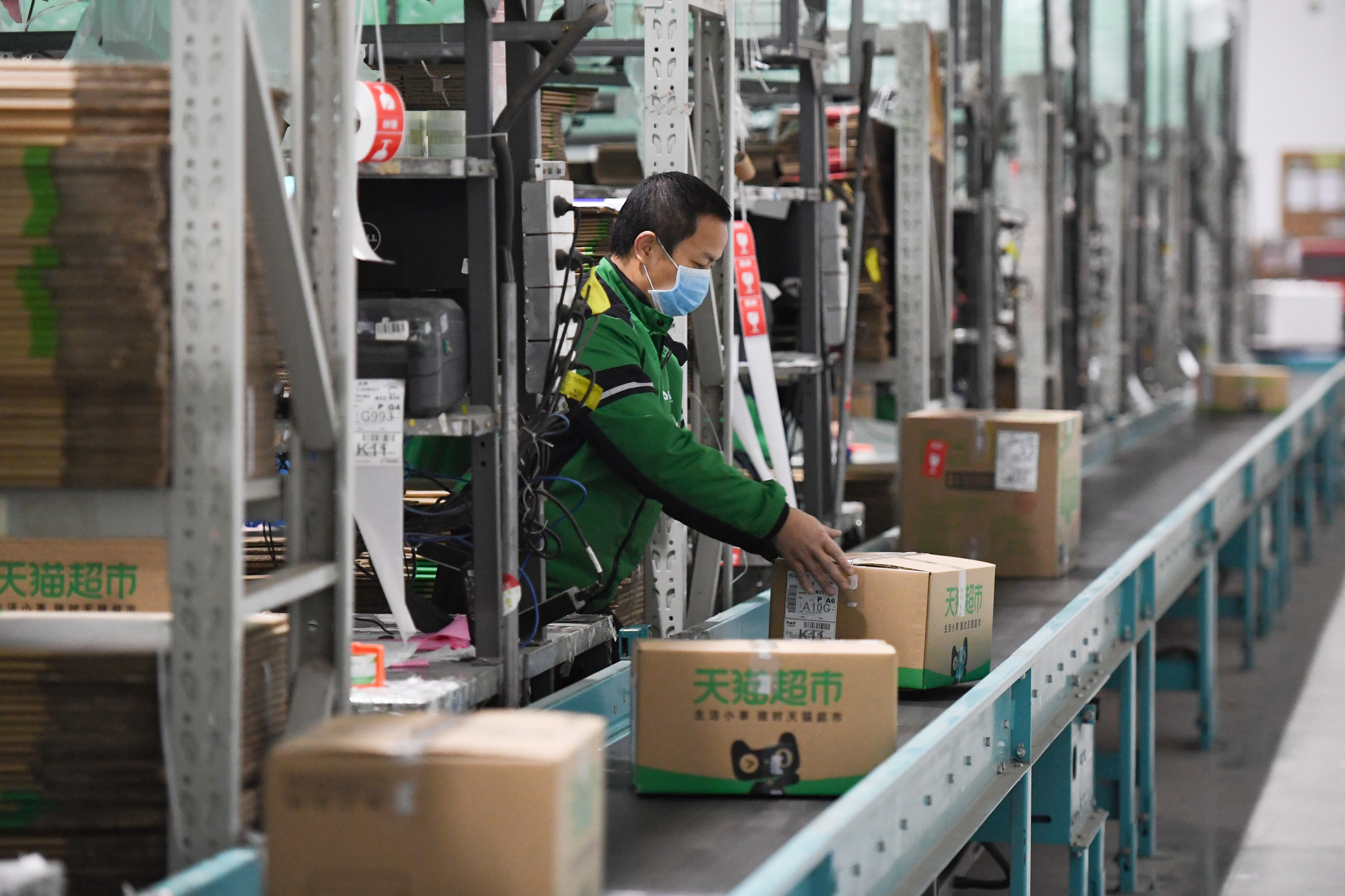 近日,位于北京市顺义区的菜鸟物流仓库在做好疫情防控的同时,稳步有序复工复产。据介绍,为应对新冠肺炎疫情带来的影响,物流企业一方面严格落实员工返京隔离、进出园区和仓库体温测量登记等一系列防疫措施,另一方面通过多种方式补齐员工差额。该物流仓库目前每天处理订单近五万件,生产运营基本恢复到日常水平。 新华社记者 鞠焕宗 摄