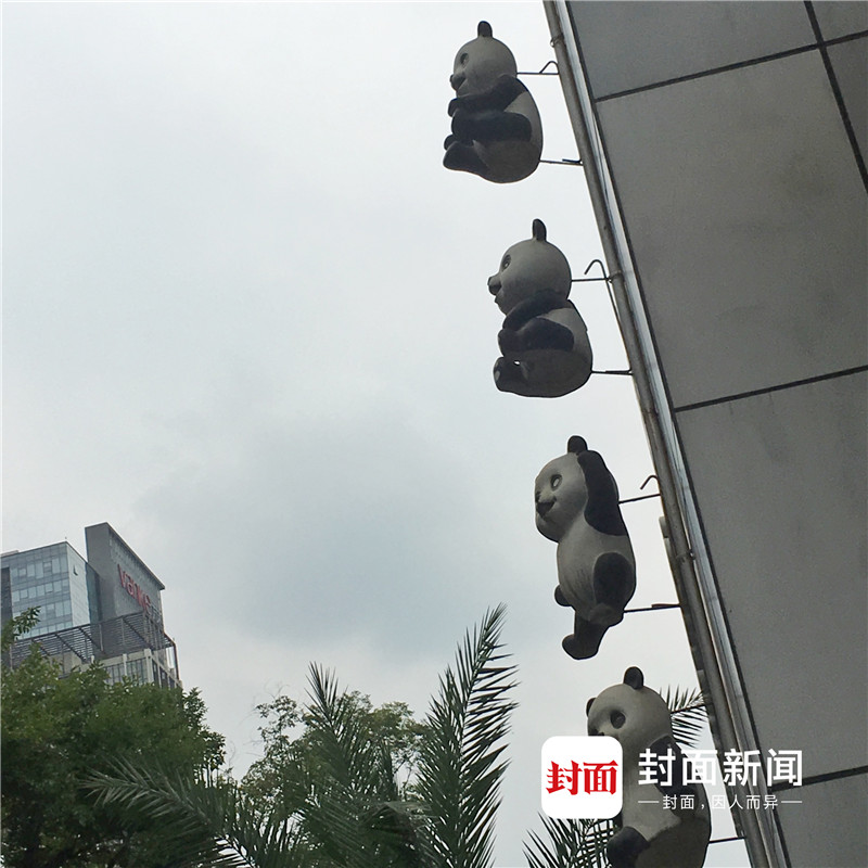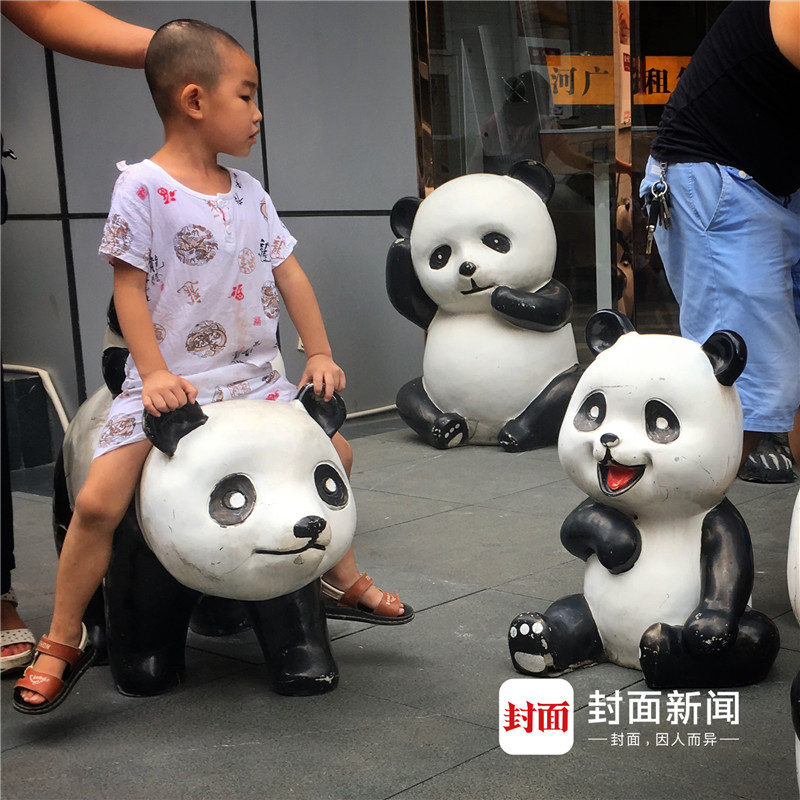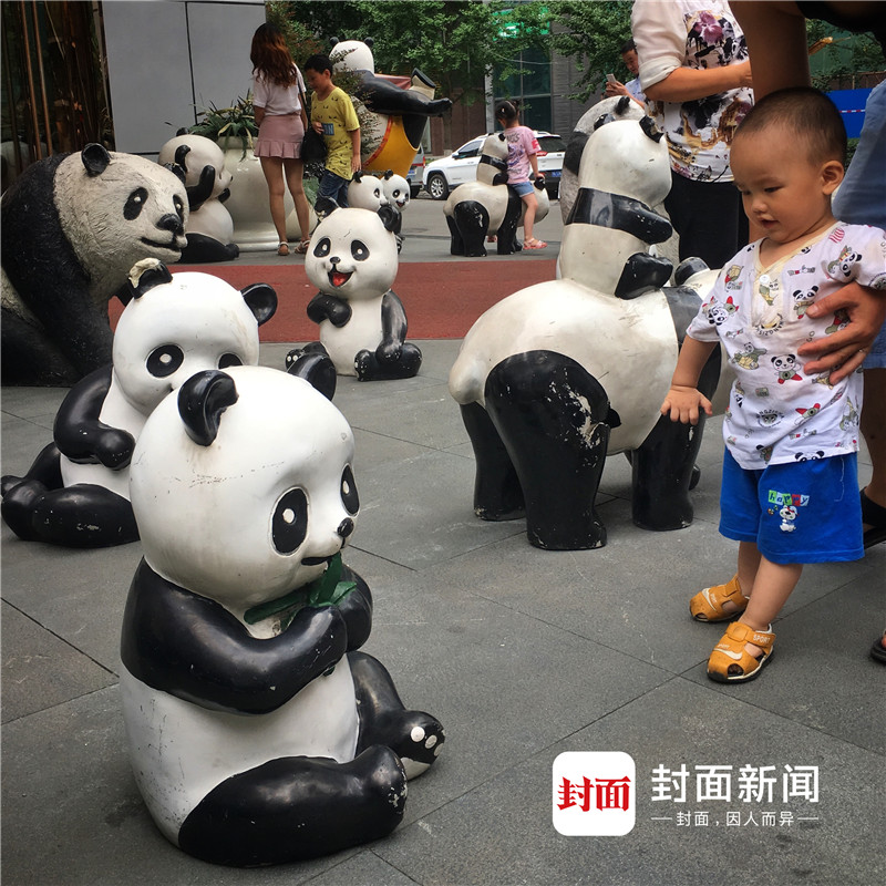 成都二环路东二段路口的数十只形态、表情、大小各异的熊猫宝宝,或站、或趴、或躺,萌态可掬的模样吸引了不少市民上前合影拍照。据了解,大熊猫雕塑由玻璃钢纤维制成,每只身长在80到100厘米不等,重约20公斤。封面新闻 记者 谭曦摄影报道