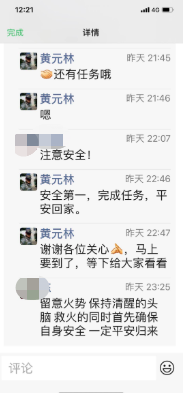 在朋友圈留言中,不少朋友提醒他,注意安全,他回复说:还有任务哦,谢谢大家,马上要到了。安全第一,完成任务,平安回家。
