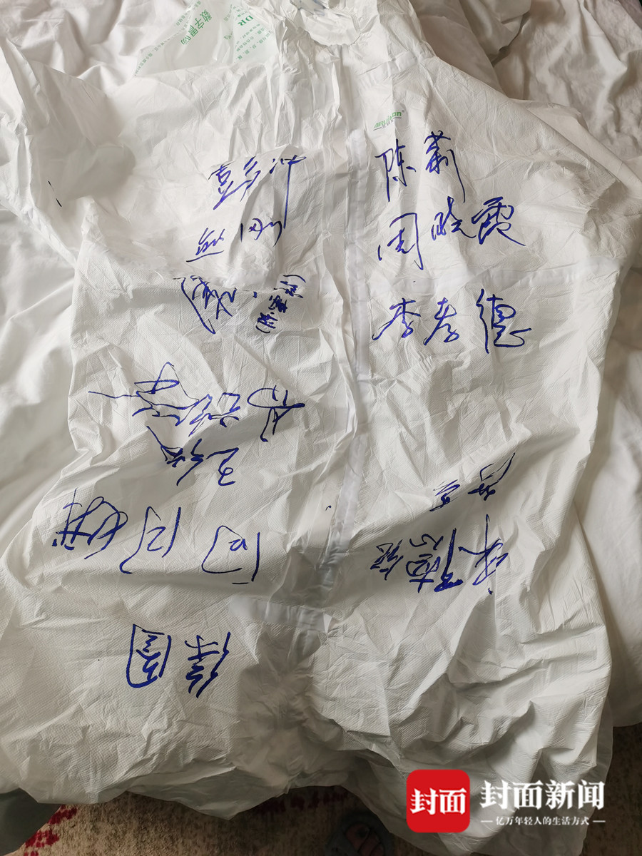 战友们在黄维的防护服上签名
