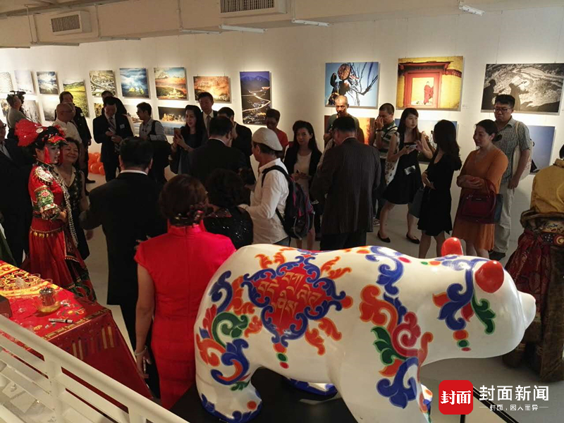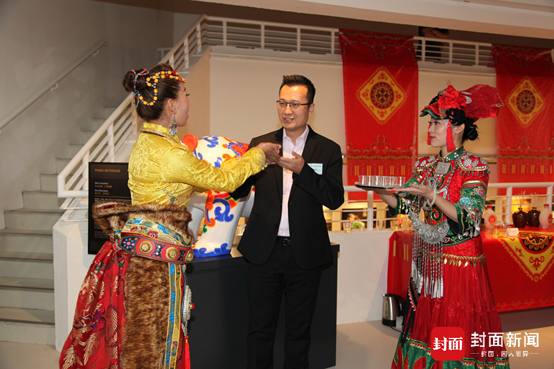 封面新闻讯(见习记者 陈荷)8月22日,由四川省文化厅主办,四川省文化馆承办的2017四川藏羌彝文化产业走廊影像展在香港艺术中心举办。本次影展由摄影作品、影像视频、公共文化产品三大类型组成,涵盖“天、地、人”三大板块,充分展示四川藏族、羌族、彝族地区的自然风貌、风土人情和精神文化生活。四川省文化馆工作人员身着藏羌彝民族服饰,用少数民族独特的方式“祝酒歌”对观展的香港地区来宾表示欢迎。
