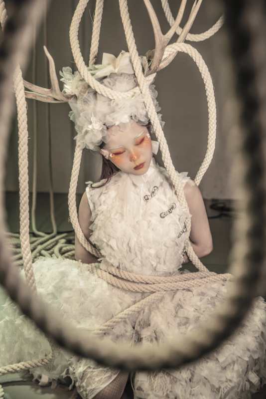 担纲此次服饰造型的设计制作师,是90后设计师兼摄影师焕焕。此前,由她设计打造的山海经神兽造型、拟人系列创作拍摄,极具个人风格,受到网友热捧。此次设计创作《晏山河》的服装,焕焕透过古蜀文物的色彩、材质、造型获得服装创作灵感,与现代工艺创作方式融合,展现出具有古蜀国祭祀特色的服饰造型。