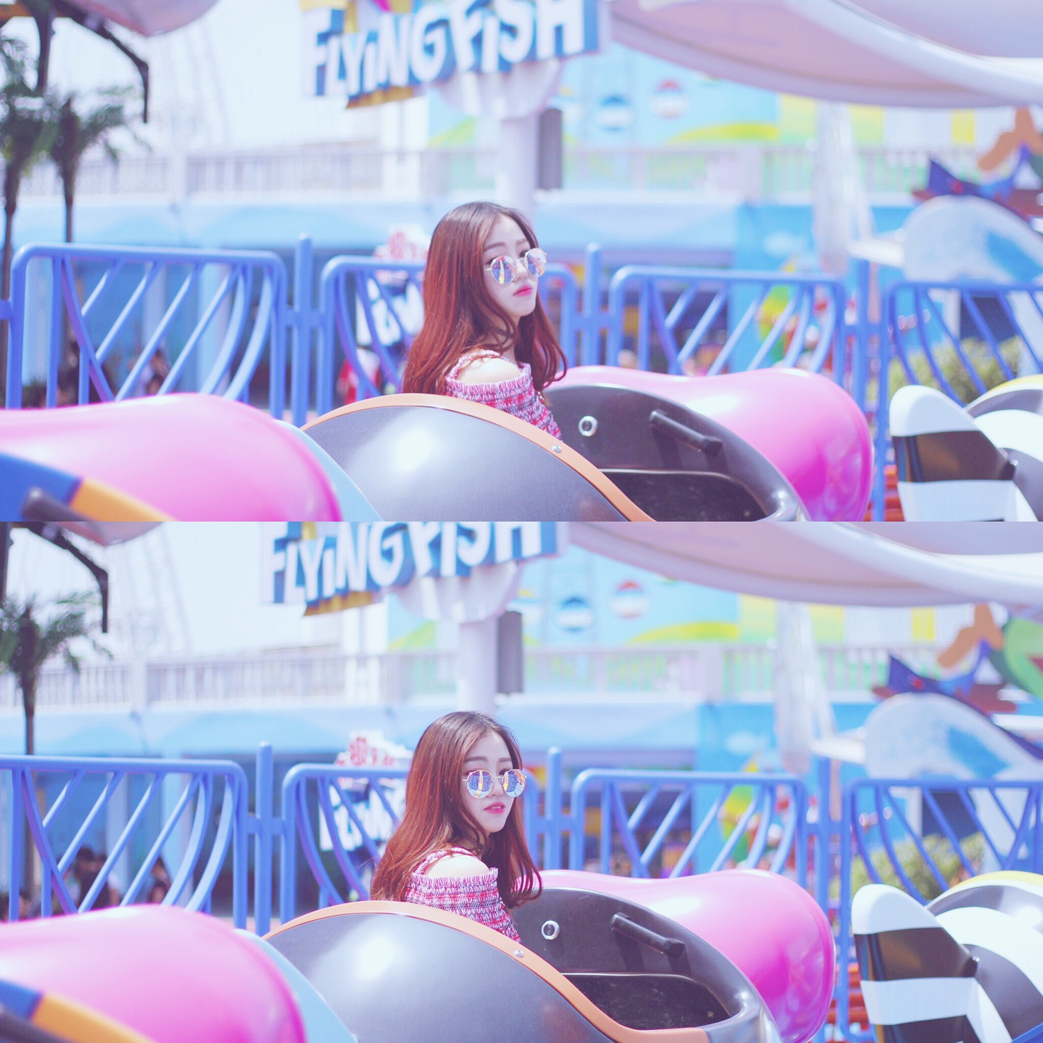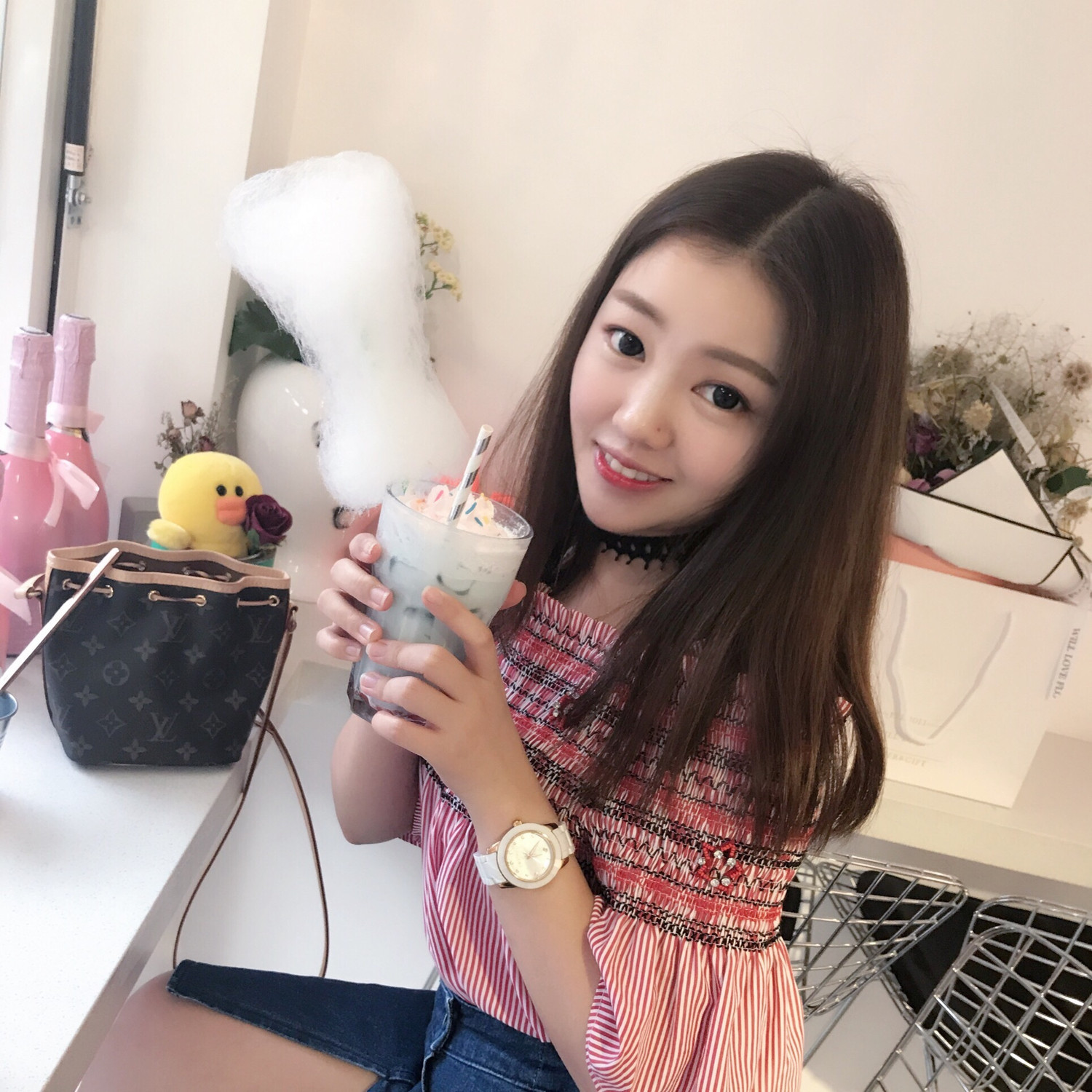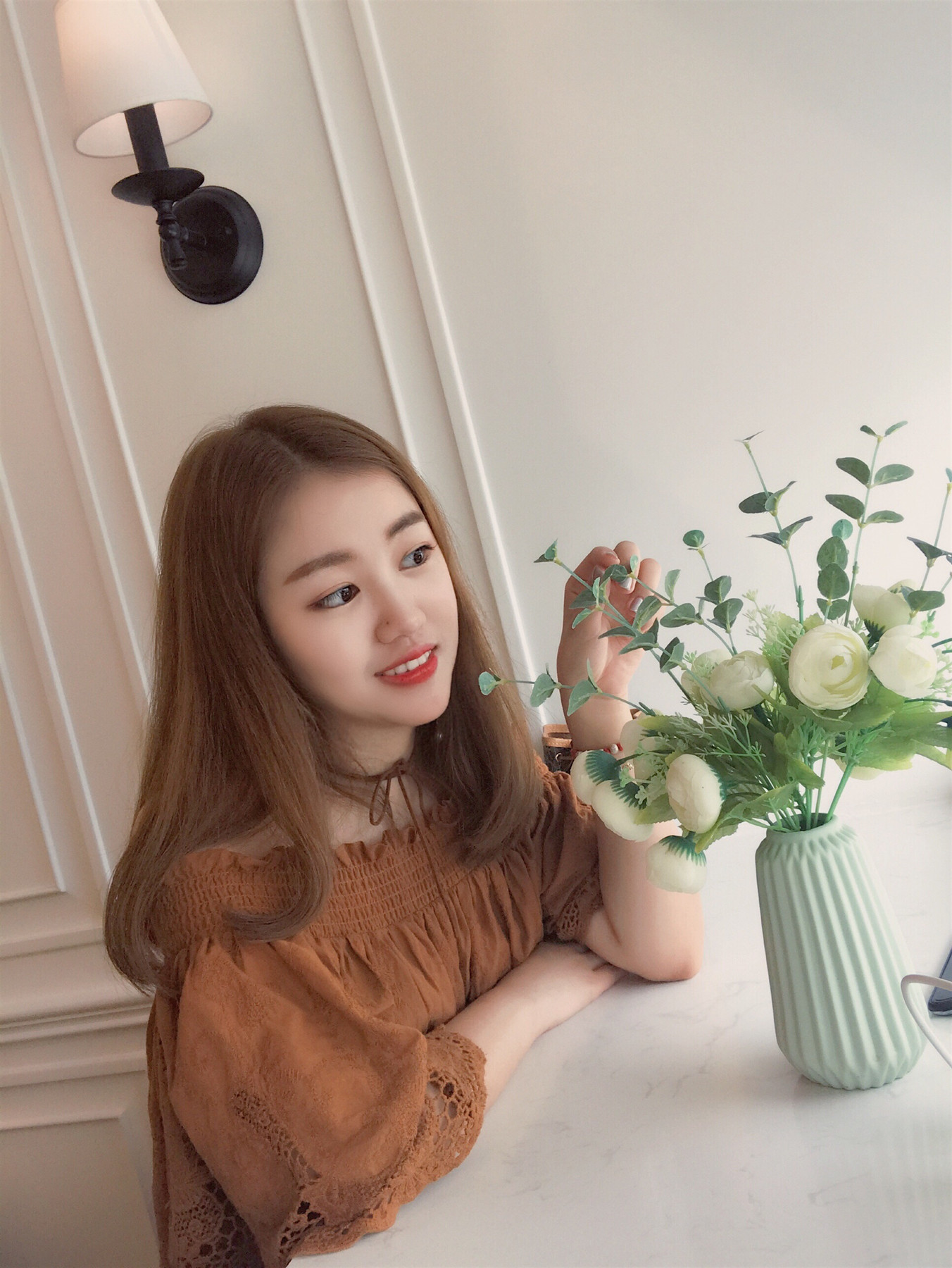 敢穿粉色的妹子一般都肤白貌美气质佳,白嫩的肌肤给王雯怡的气质增分不少,上衣一字肩小短袖露出性感的锁骨,花瓣边边更富层次感。