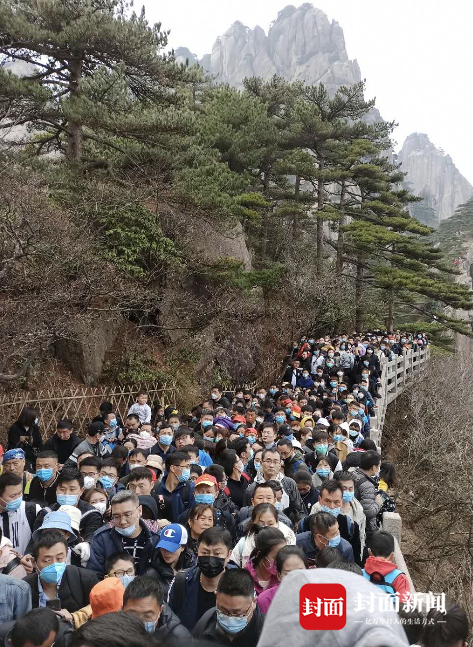 紧接着,多张“人从众”图片,以及多段视频在网上疯传。网友对黄山景区疫情防控提出担忧的同时,并把黄山景区此举与今年1月19日的武汉百步亭社区相提并论。