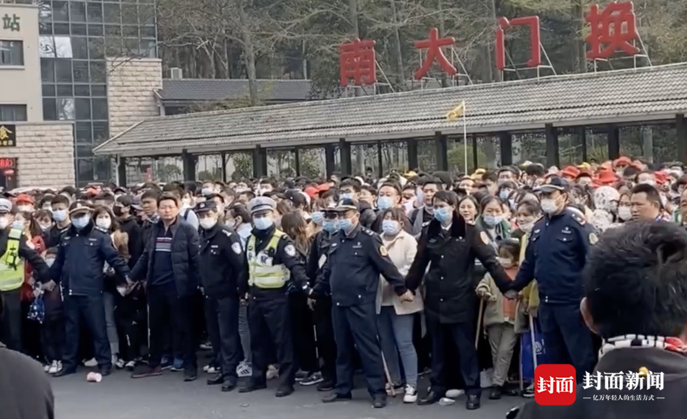 封面新闻:现场看,游客人挨人,一米以上的安全线去了哪里?