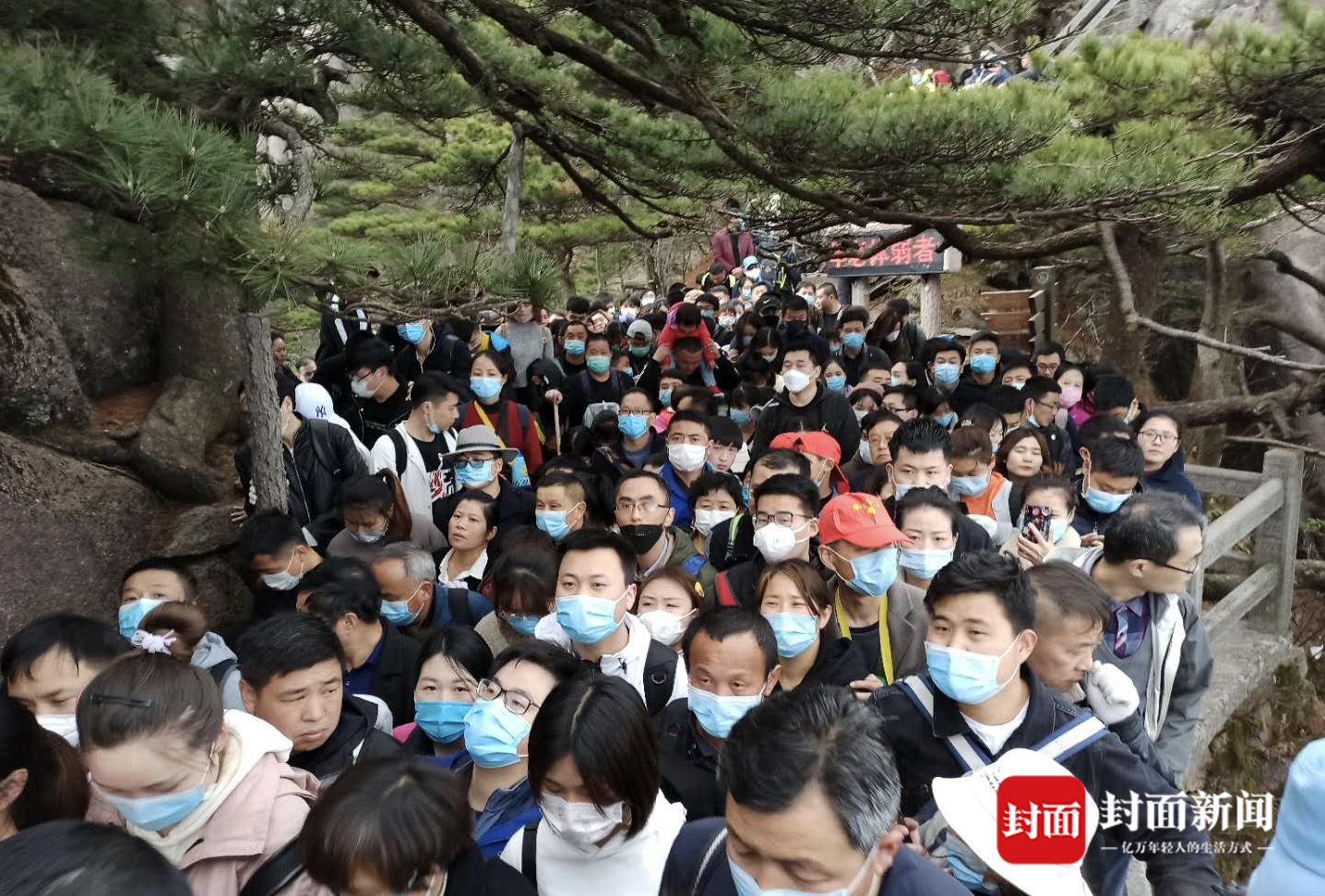 黄山景区:安全事故的预案我们有准备。踩踏情况是不大可能,景区的最大承载量是5万,因为疫情现在限流到了两万,因为黄山整个风景区是群山,真正进到景区里面了,两万人在群山里是不会显得很多的。