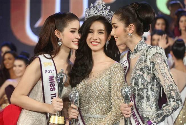 25日晚,2017泰国蒂芬妮变性选美皇后出炉,由新人演员Yoshi Rinrada(图中央)夺冠。