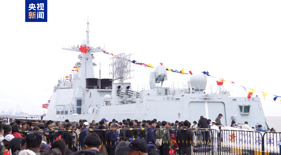 为庆祝人民海军成立77周年,弘扬拥政爱民、拥军优属光荣传统,4月23日至25日,海军宿州舰与沂蒙山舰在上海吴淞口国际邮轮码头面向市民开放参观。