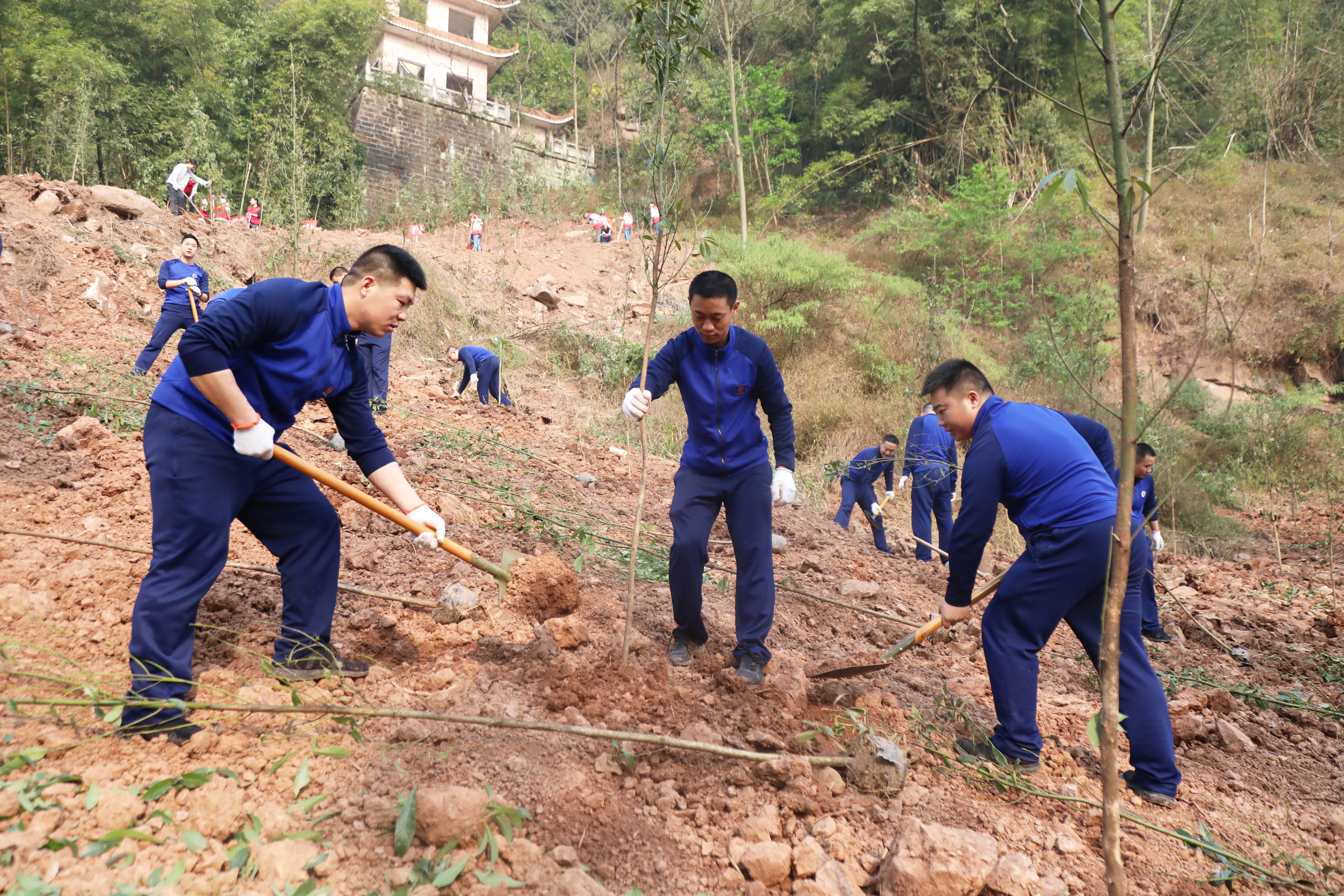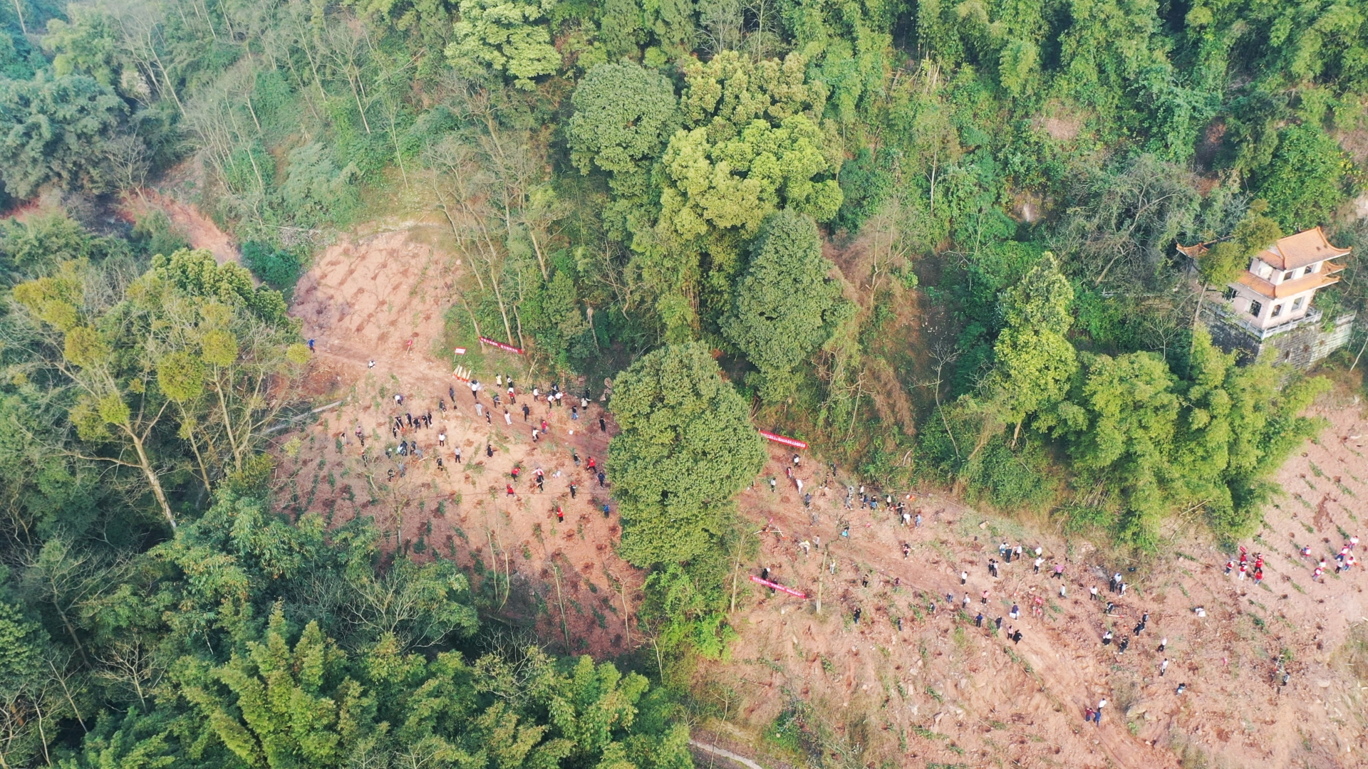 在泸州市江阳区方山景区,200多名机关、部门、街镇干部职工铲土填坑、培土扶苗、踏实土层、围堰浇水,齐心协力种下了1100株桢楠。