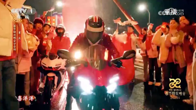 △2025年总台蛇年春晚,重庆分会场,张雪机车驶过千厮门大桥。