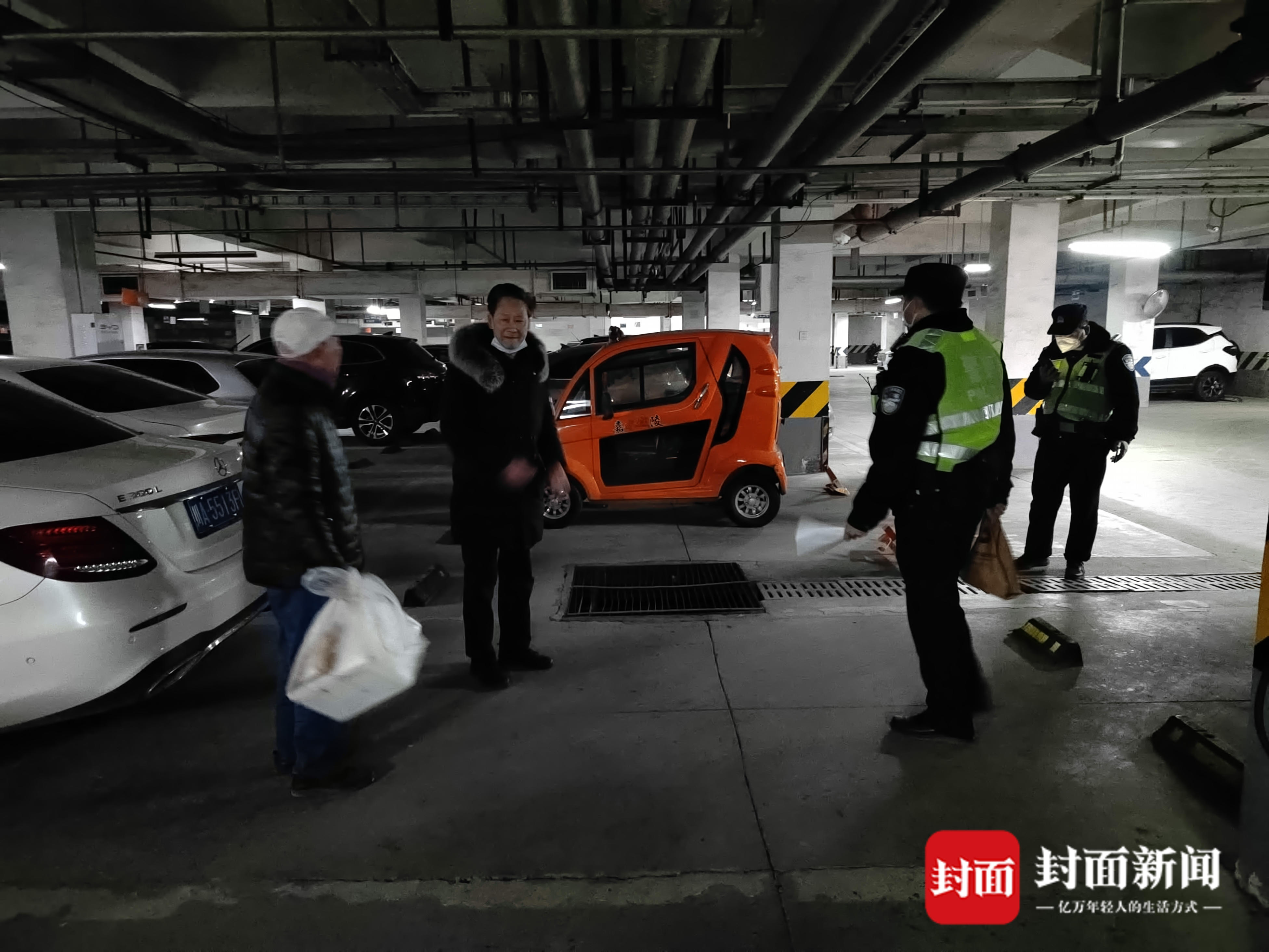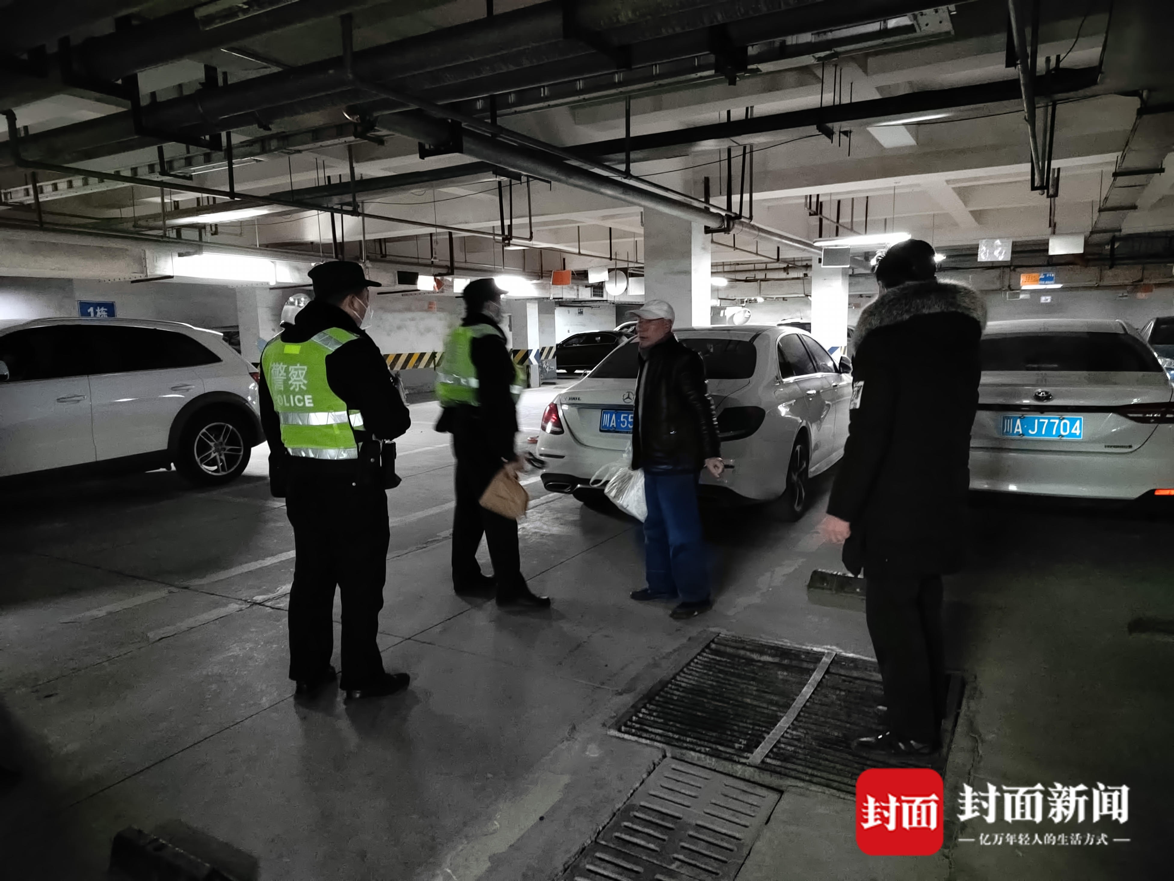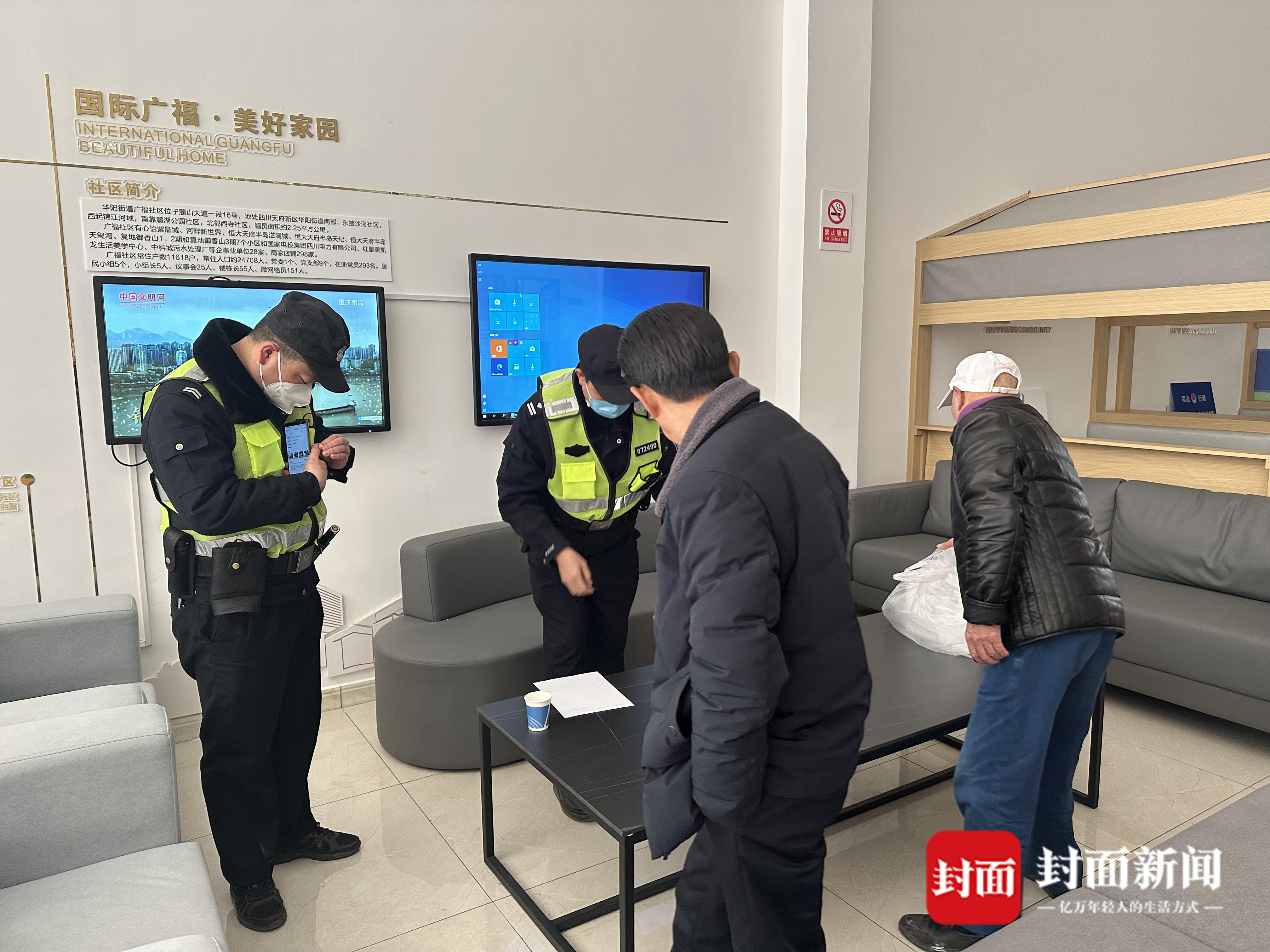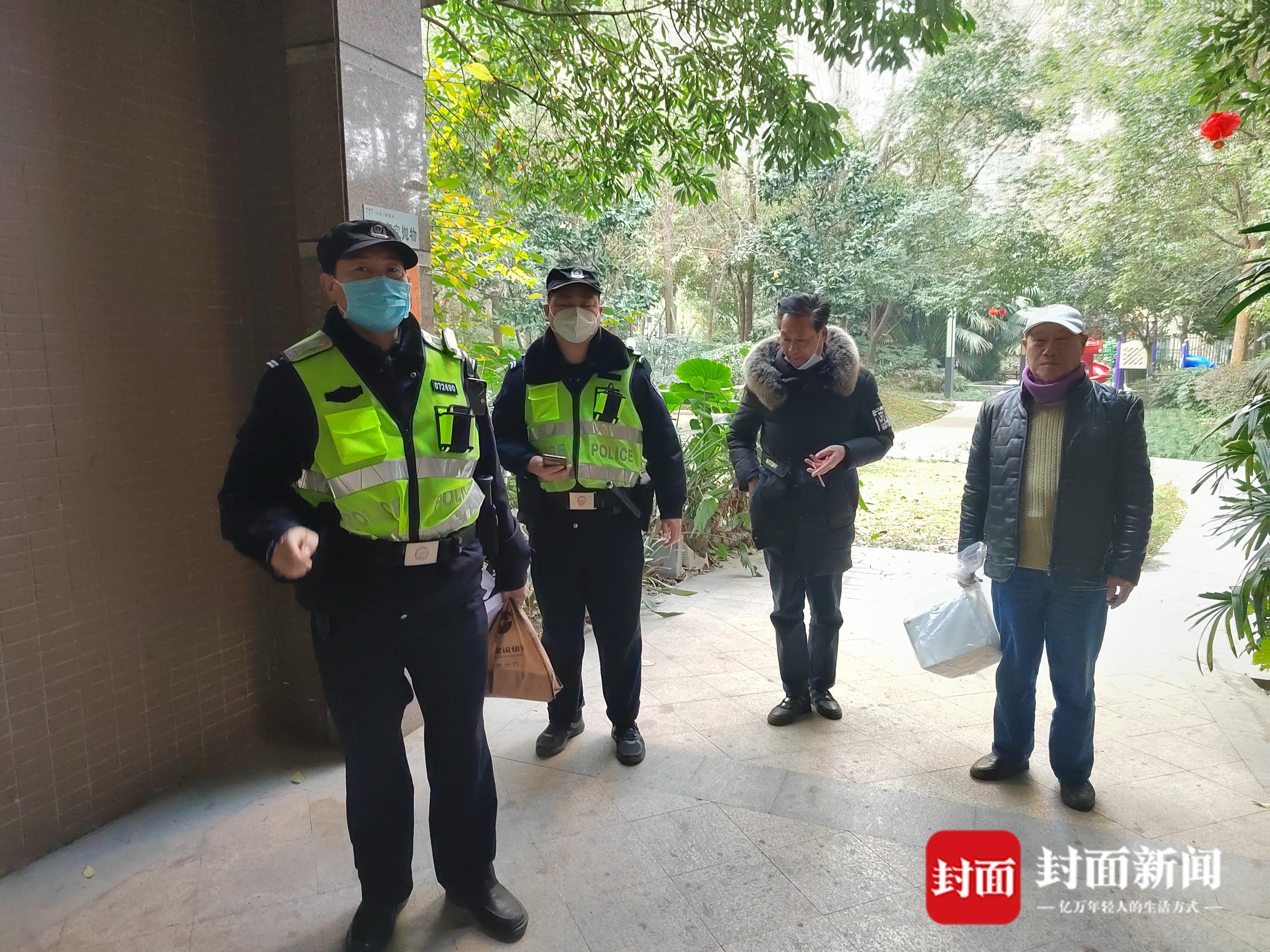 李大爷配合社区民警在小区寻找失主