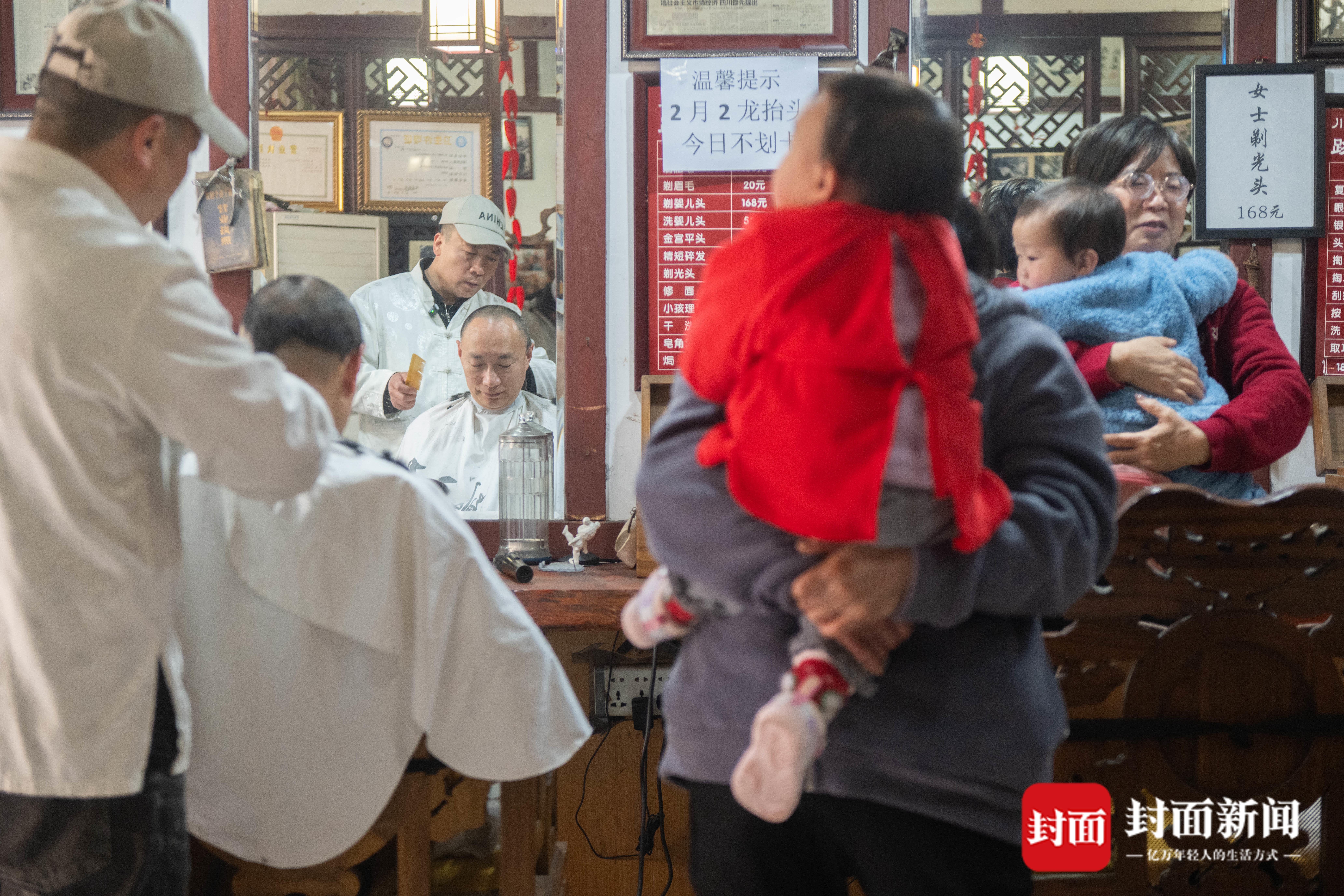 2026年3月20日,成都市工农院街一家理发店,众多小朋友在家人带领下前来理发。