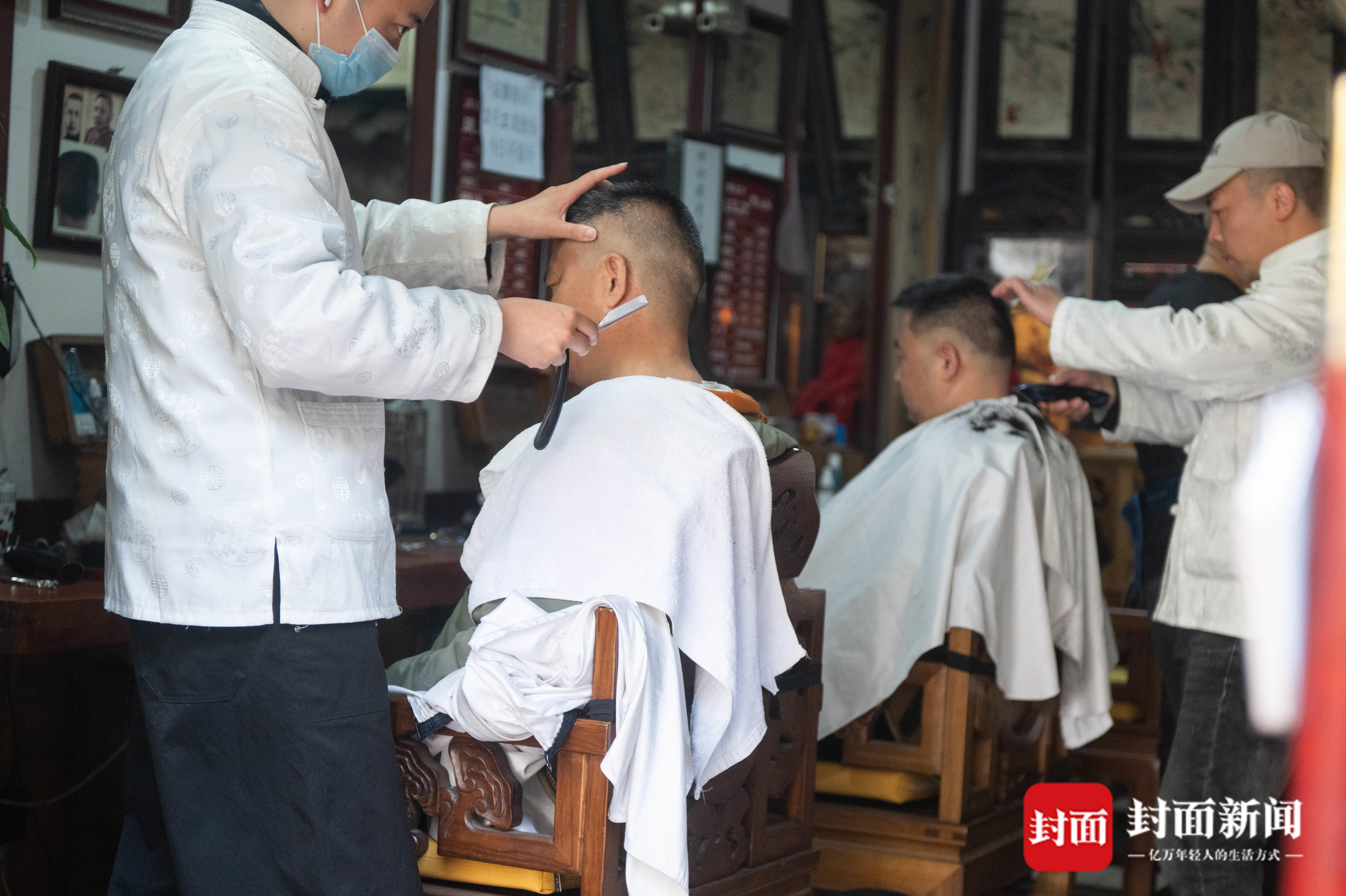陈建宗子承父业,从小跟着父亲学习理发技艺,如今已经从业30多年。
