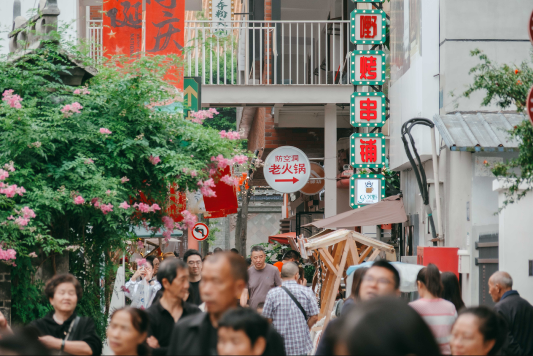 随着夜幕降临,巷子里,各种食物的香气相互交织,餐饮店人气火热,老板们热情招呼着。部分商家还推出了各具特色的促消费活动,老巷子院坝串串菜品8.8折、皖川糖水全场8.8折、防空洞火锅鸭肠9.9元每份还享受买五送一……共同点燃文庙·印巷文创街区的消费激情。