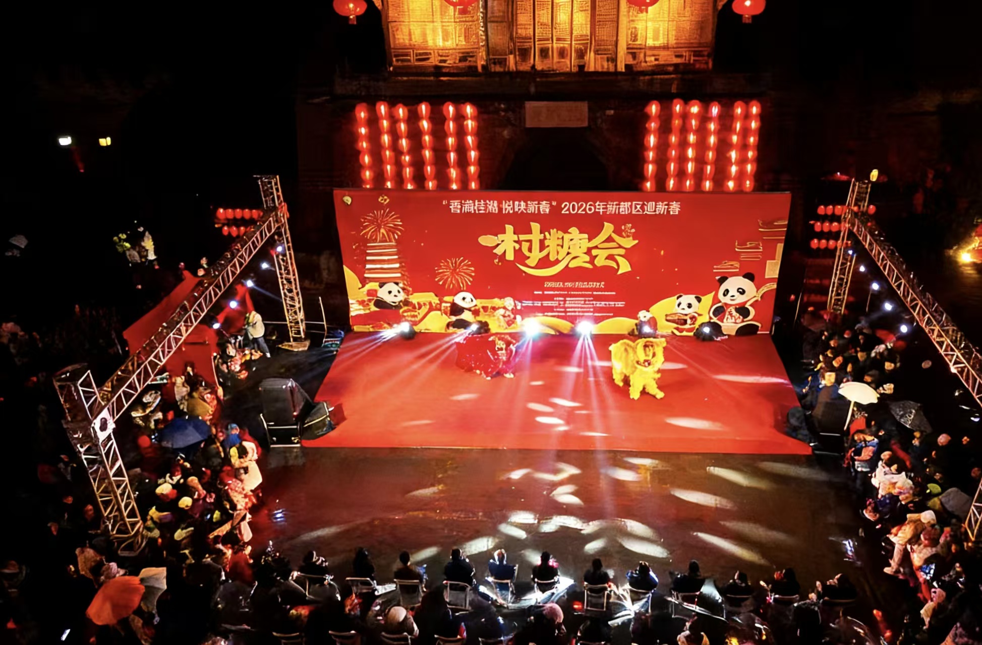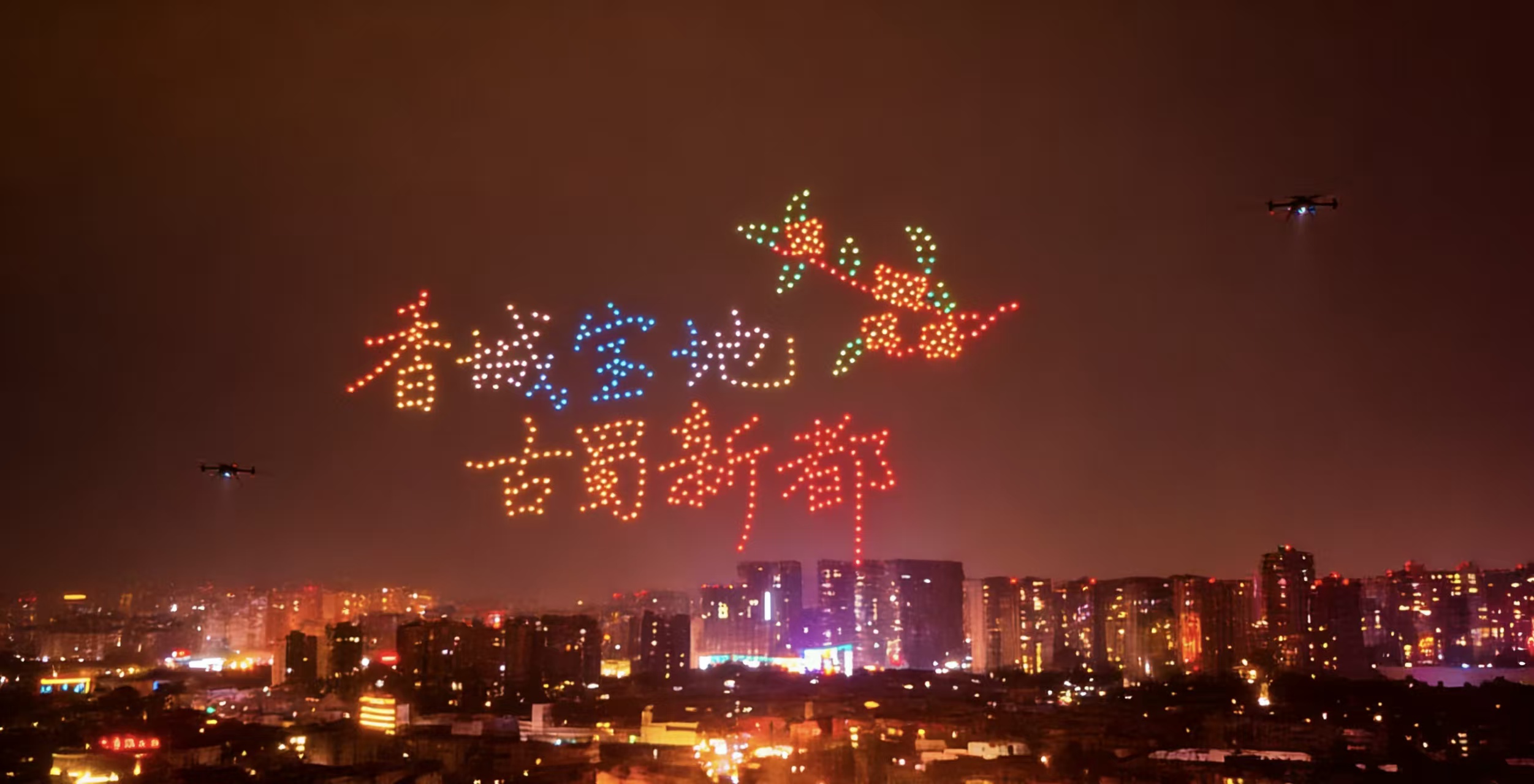 近年来,沉浸式文艺已逐步成为推动文旅产业转型升级、丰富群众精神文化生活的重要路径,“科技+在地文化”的融合发展模式,更成为激活传统文化时代生命力的关键抓手。而本次新都新春村糖会的无人机光影表演,正是协会推动“沉浸式文艺+科技+县域在地文化”融合发展的具体实践。