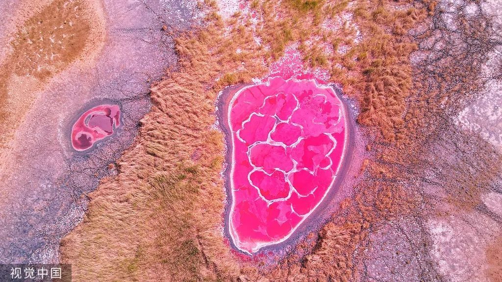 湖底盐类矿物质将湖面染红