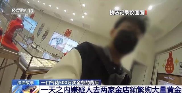 一天之内嫌疑人去两家金店频繁购买大量黄金