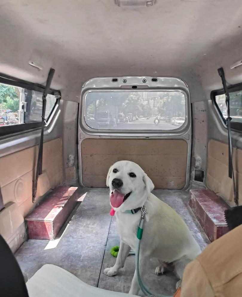 在朋友的推荐下,婷婷使用货拉拉平台打车,前来的师傅倒是出奇爽快,还会帮忙搬狗上车,空间也很宽敞。只是用运货车才得以载狗出发,让她直言:“觉得有些好笑,也有点滑稽。”