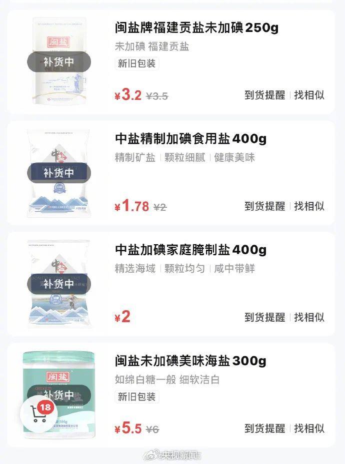 部分网店食用盐显示缺货