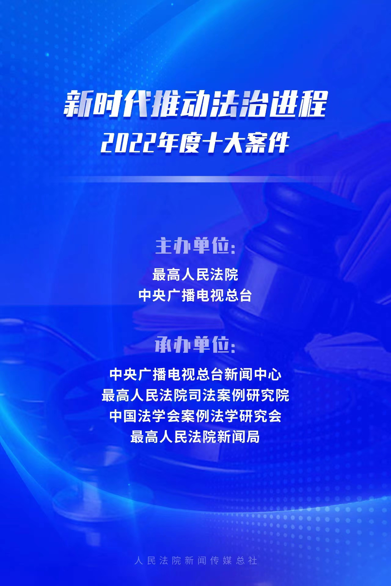 据悉,本次活动由中央广播电视总台新闻中心、最高法司法案例研究院、中国法学会案例法学研究会、最高法新闻局承办,通过对全国法院2022年所审结的各类案件进行筛选和初评,共选出40件具有较大影响力的典型案件进行网络投票。参选案件类型包括刑事、民事、商事、知识产权、行政、审判监督、国家赔偿、执行等领域具有代表性、影响力的案件。