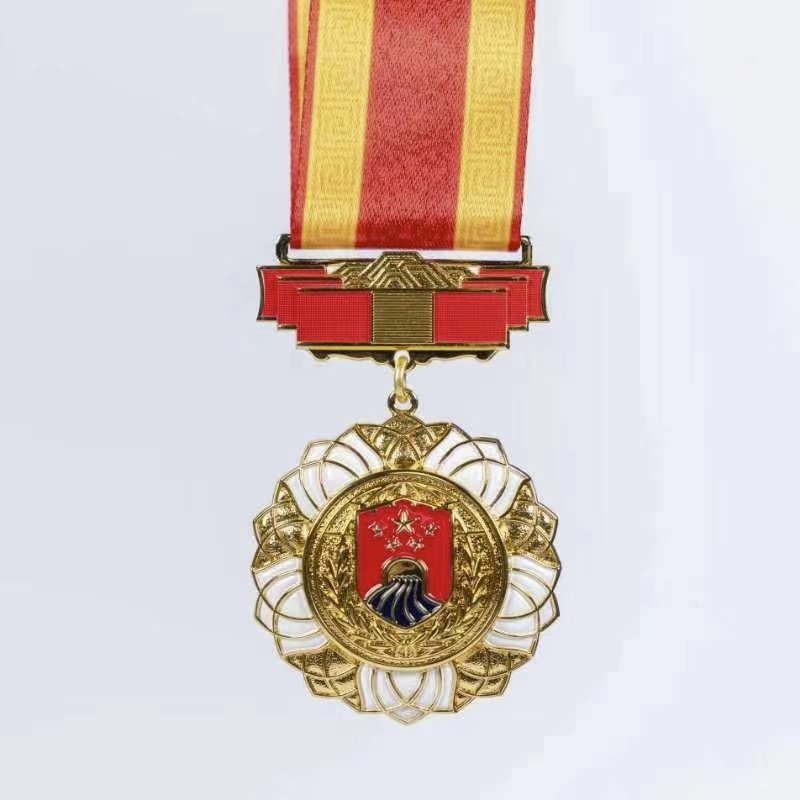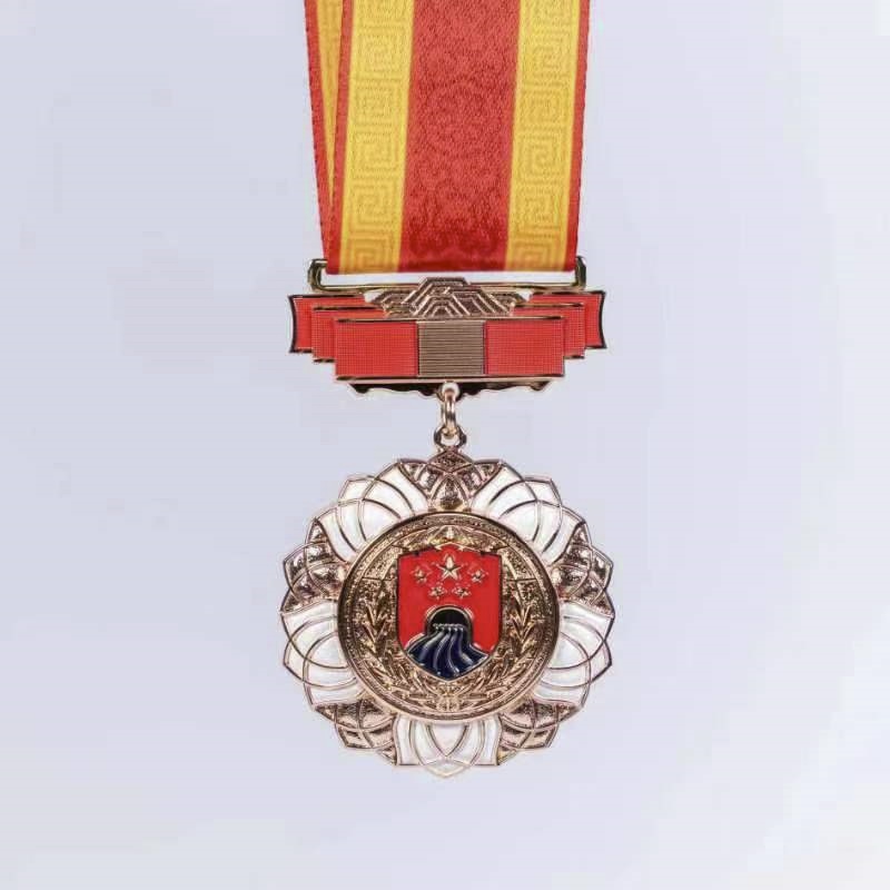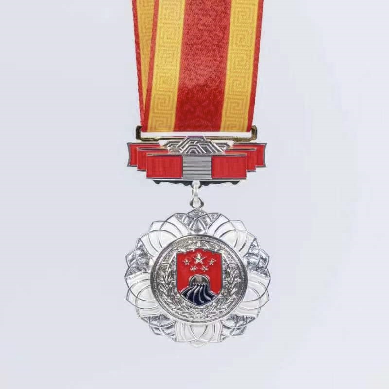 国家移民管理机构戍守边疆纪念章主章由五星、长城关隘、盾牌、橄榄枝、雪莲花等元素构成。体现移民管理机构依法履行职责,担负维护国家主权、安全和发展利益,促进服务经济社会发展,保障中外人员交往交流使命任务。雪莲花寓意坚守、无畏、纯洁,象征戍边民警的忠诚信念和崇高品格、顽强意志和无私奉献、斗争精神和血性担当。副章由飘带、山峰、如意等元素构成,金银铜色条分别代表戍边30年、20年、10年。