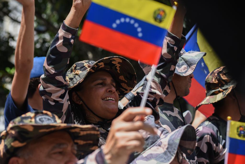 10月4日,在委内瑞拉首都加拉加斯的玻利瓦尔广场,玻利瓦尔民兵组织成员参与全国特别军事演习。新华社发(马科斯·萨尔加多摄)
