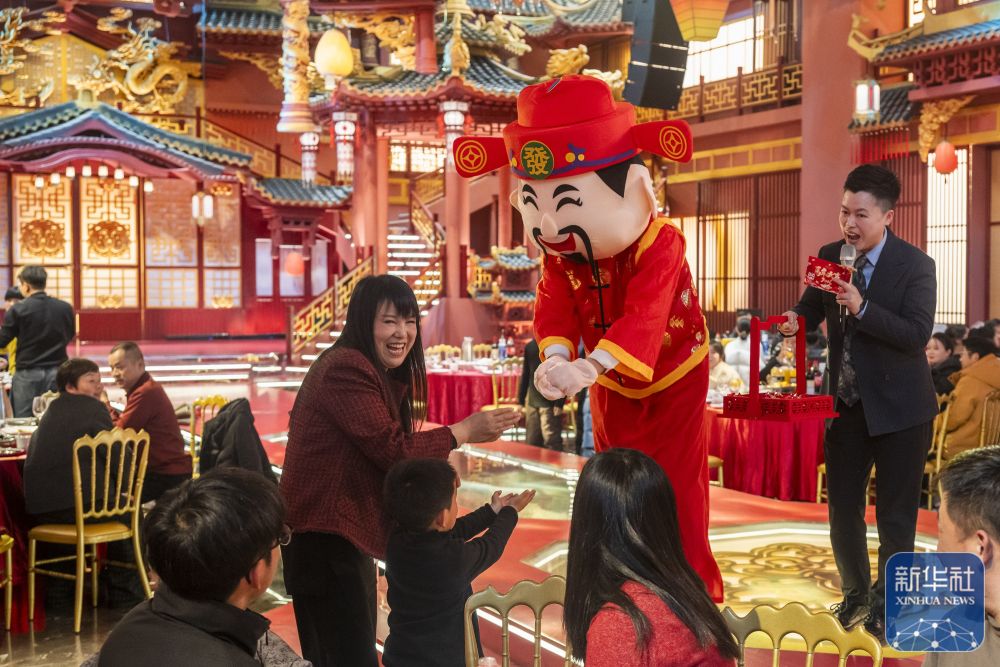 ↑ 2月16日,人们在安徽省芜湖市繁昌区繁阳镇一家酒店内吃年夜饭。新华社发(肖本祥 摄)