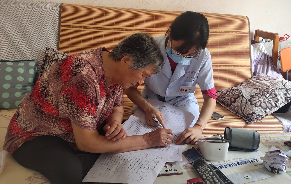 “徐医生,还好你们去年体检时发现了我血压有异常,经过一年的用药调理,我现在血压已经稳定了。”4月8日,68岁的的李阿姨来到沙河源社区卫生服务中心,进行每月1次的常规健康检测,一见到自己的家庭医生徐丹,李阿姨就开心地拉着她的手说道。