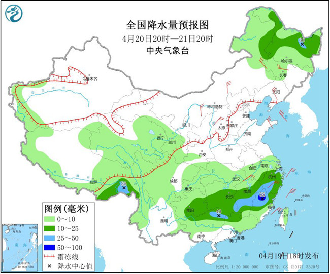 除大风降温外,北方还将有降水过程。预计今天到22日,内蒙古中东部、华北北部、东北地区有小到中雨,内蒙古中东部、黑龙江、吉林东部有小雨转雨夹雪或雪,黑龙江西部和北部等地局地还有大到暴雪。