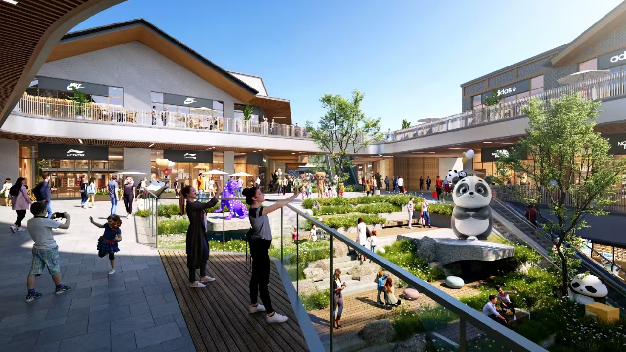 项目依托紧邻熊猫基地的区位优势,将在品牌引入、服务体验与整体营销中深度融合大熊猫IP,系统营造“熊猫名片+”科技互动、爱情打卡、生态休闲、潮流演艺、特色川潮、运动活力六大场景,全力塑造全国首个“熊猫IP+场景商业”特色奥莱,打造文商旅深度融合的标杆示范。