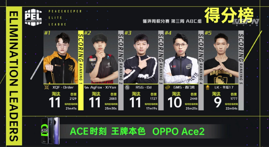 图1 PEL S1常规赛第三周首日选手得分榜