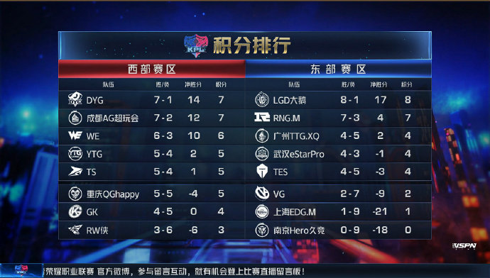 KPL春季赛常规赛第六周结束,赛程已经正式进入了抢分大战阶段,尽管还没队伍已经确定提前进入季后赛,理论上VG后续的战绩存在影响LGD大鹅晋级季后赛的可能,但这支新军已经无比接近东部季后赛的胜者组。