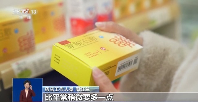 药店工作人员 周红兰:买蒙脱石散和诺氟沙星这两种药的人比平常稍微要多一点,好多人咨询,也好多人买。