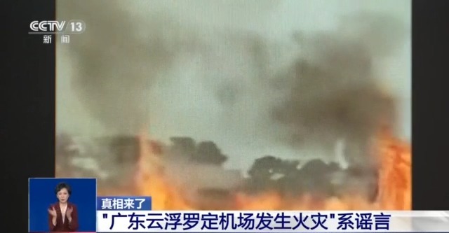 2月17日,罗定机场回应称,视频中的画面并非机场草坪失火。