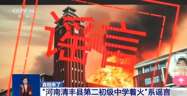 2月16日,有网民在某短视频平台发布河南清丰县第二初级中学着火信息,经清丰县互联网信息办公室向县教育和公安部门核实,网传视频系谣言,视频内容为AI生成。目前,视频发布者已被网信部门批评教育,相关视频已删除。