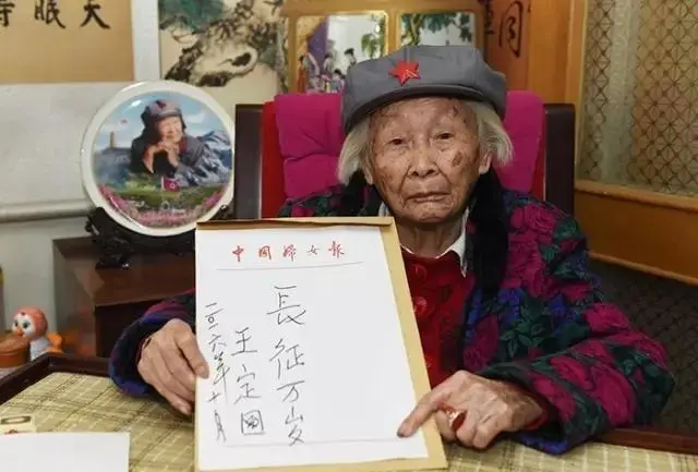 王定国21岁随红四方面军参加长征,当时,她在红四方面军的前进剧团主要负责剧团演出的道具和演员化妆。王定国曾回忆说,自己是在歌声中走完长征的。