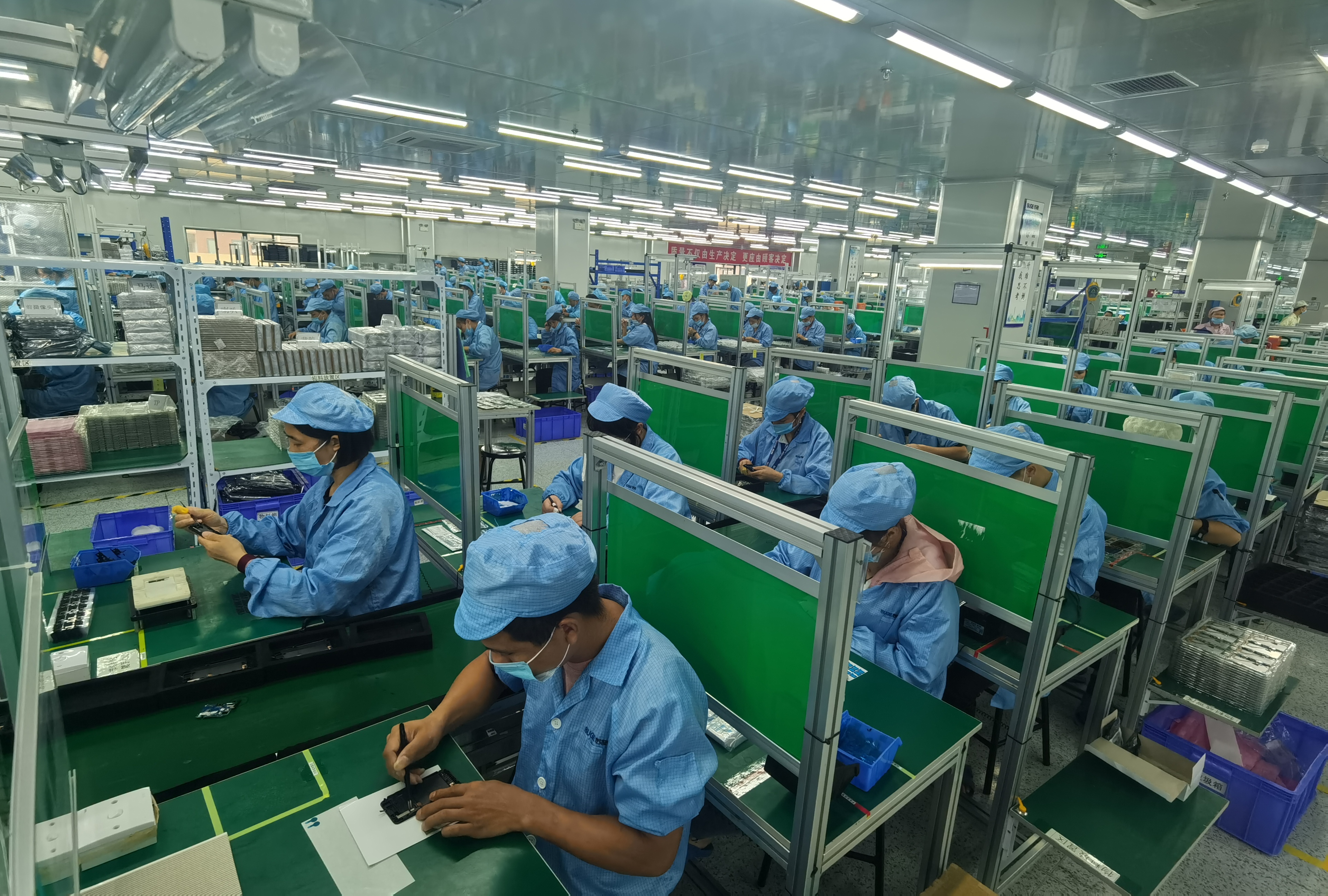 我们是第一批来参观考察的企业,智能终端产业园周边一家都还没有,所以也是第一批有意向进来的企业。2017年1月18日签约后就同时开始建厂房。2018年9月一期建成投产。目前一期投产完成之后,一个月的产能达到150万台。