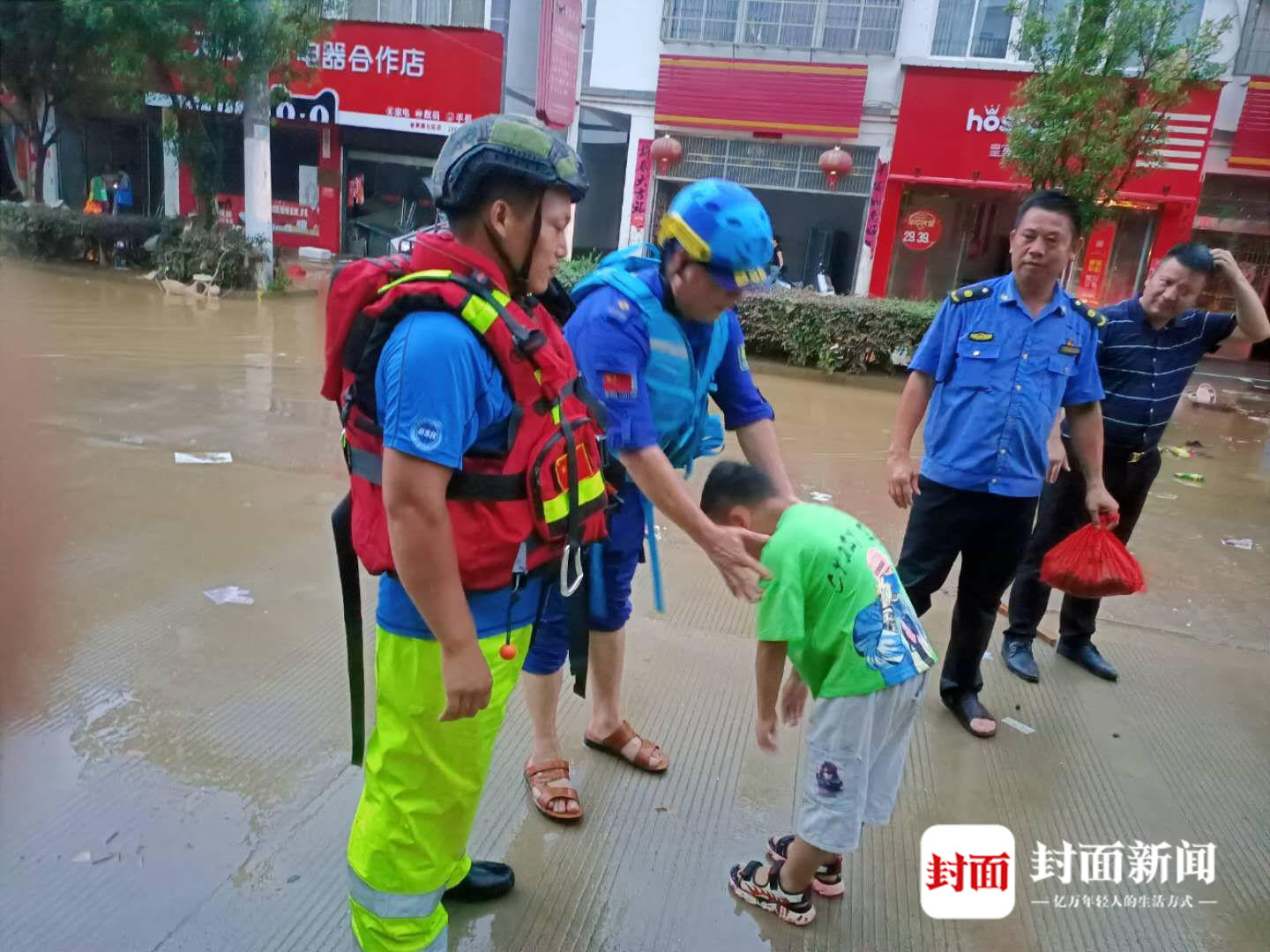 图为救援人员在疏散被困群众。