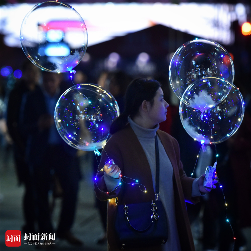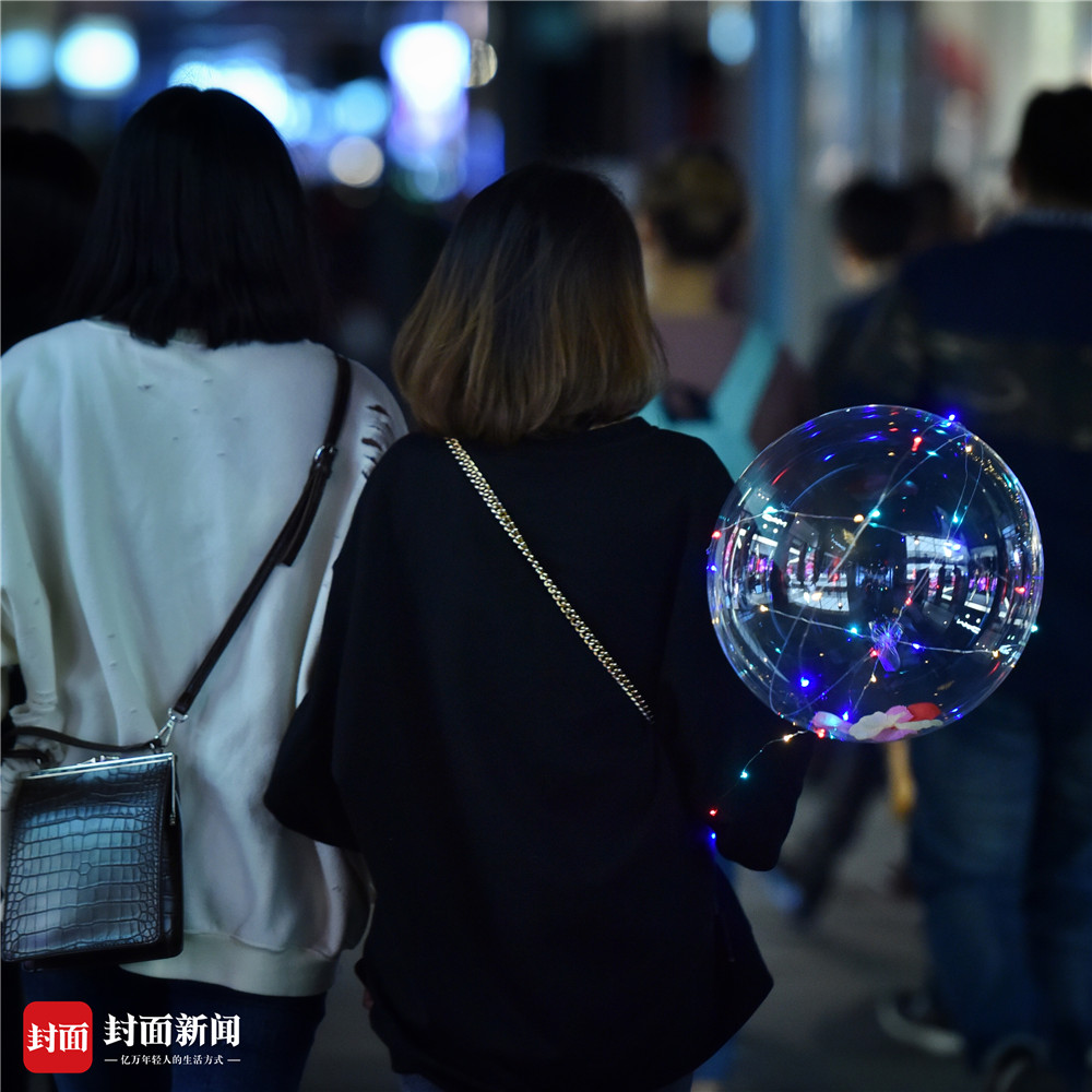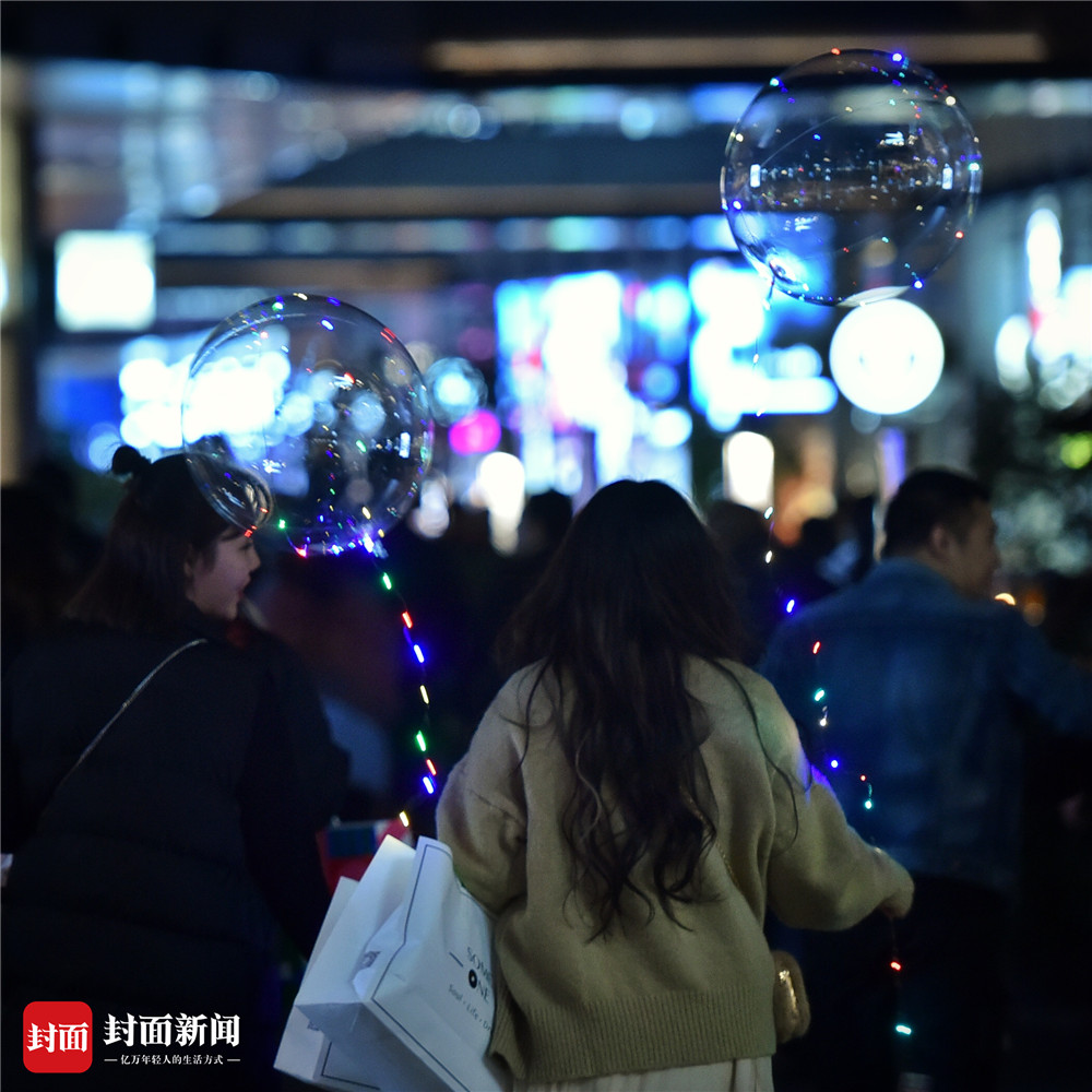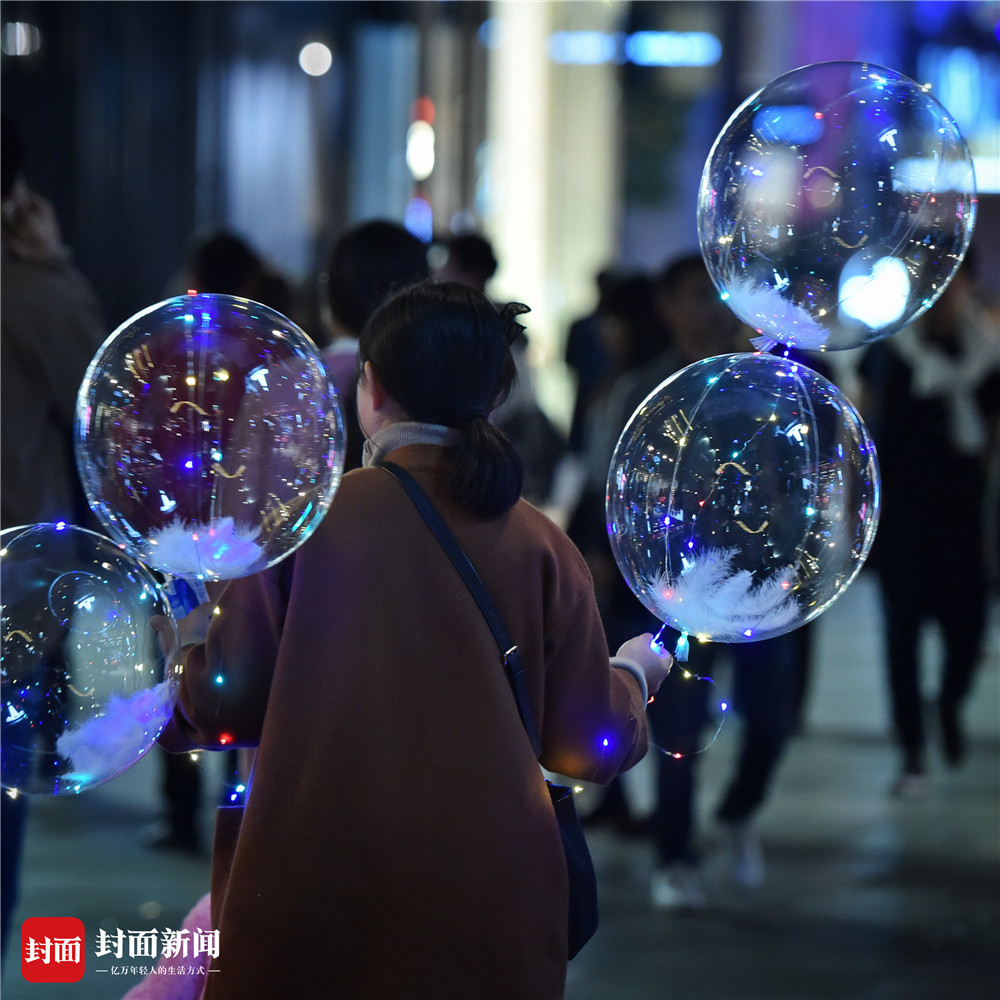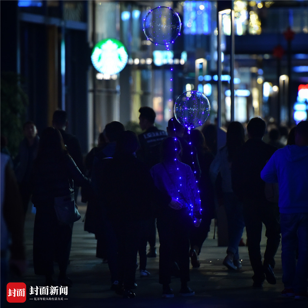 一到夜晚,年轻人们逛春熙路、太古里,你不拽个既拉风又扯眼的夜光气球都不好意思炫一下朋友圈。封面新闻记者 谭曦摄影