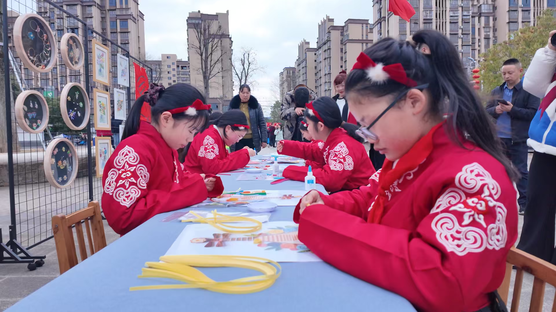 非遗衍纸体验区里,界牌小学的孩子们化身小小非遗代表性传承人,在非遗老师的指导下现场展示衍纸技艺。孩子们小手翻飞,将彩纸折卷、粘贴、造型,一个个元宵、红灯笼、小马等新春主题的衍纸作品精巧灵动,吸引了大批市民驻足。大家纷纷跟着小朋友学习衍纸技巧,亲手制作专属手作,在指尖互动中感受非遗的独特魅力。
