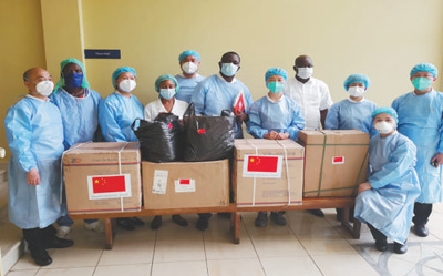 6月1日,中国医疗专家组在赤道几内亚首都马拉博考察一所收治新冠肺炎患者的定点医院并捐赠抗疫物资。