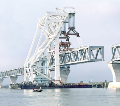 日前,中国中铁大桥局完成孟加拉国帕德玛大桥第29跨钢梁架设工作,并已经完成钢梁架设总任务量的70%以上。作为“一带一路”建设的重要交通支点,帕德玛大桥的建成将结束孟加拉国南部21个区与首都达卡之间居民摆渡往来的历史。 新华社发