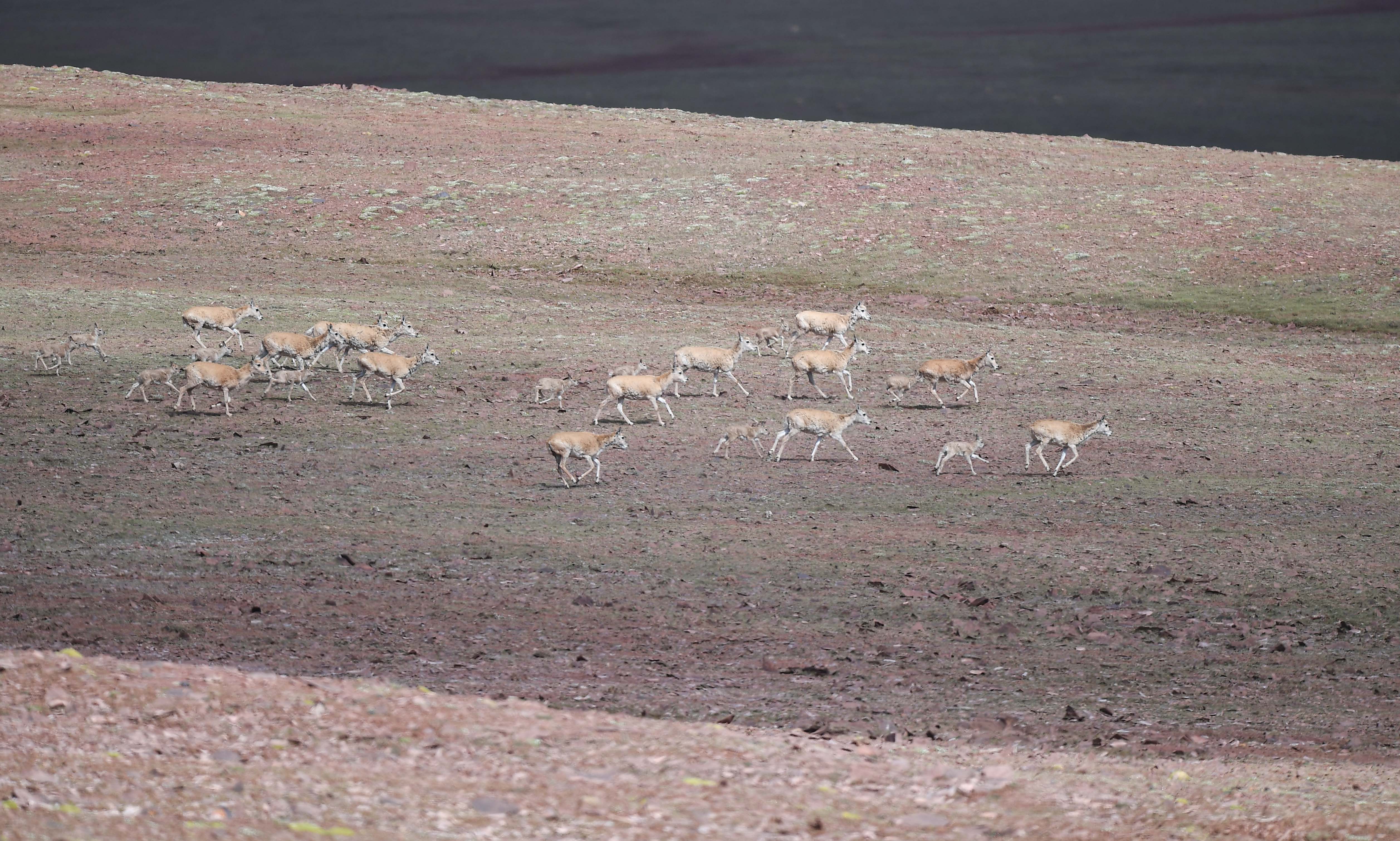 ↑7月7日在可可西里卓乃湖区域拍摄的藏羚羊。新华社记者 薛玉斌 摄