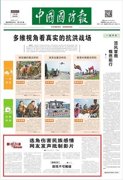 而就在14日,《中国国防报》头版刊文称,有网民指出赵薇执导的电影《没有别的爱》涉嫌使用台独分子和辱华艺人,认为这种行为严重伤害了中国人民的民族感情,呼吁对该片予以抵制。