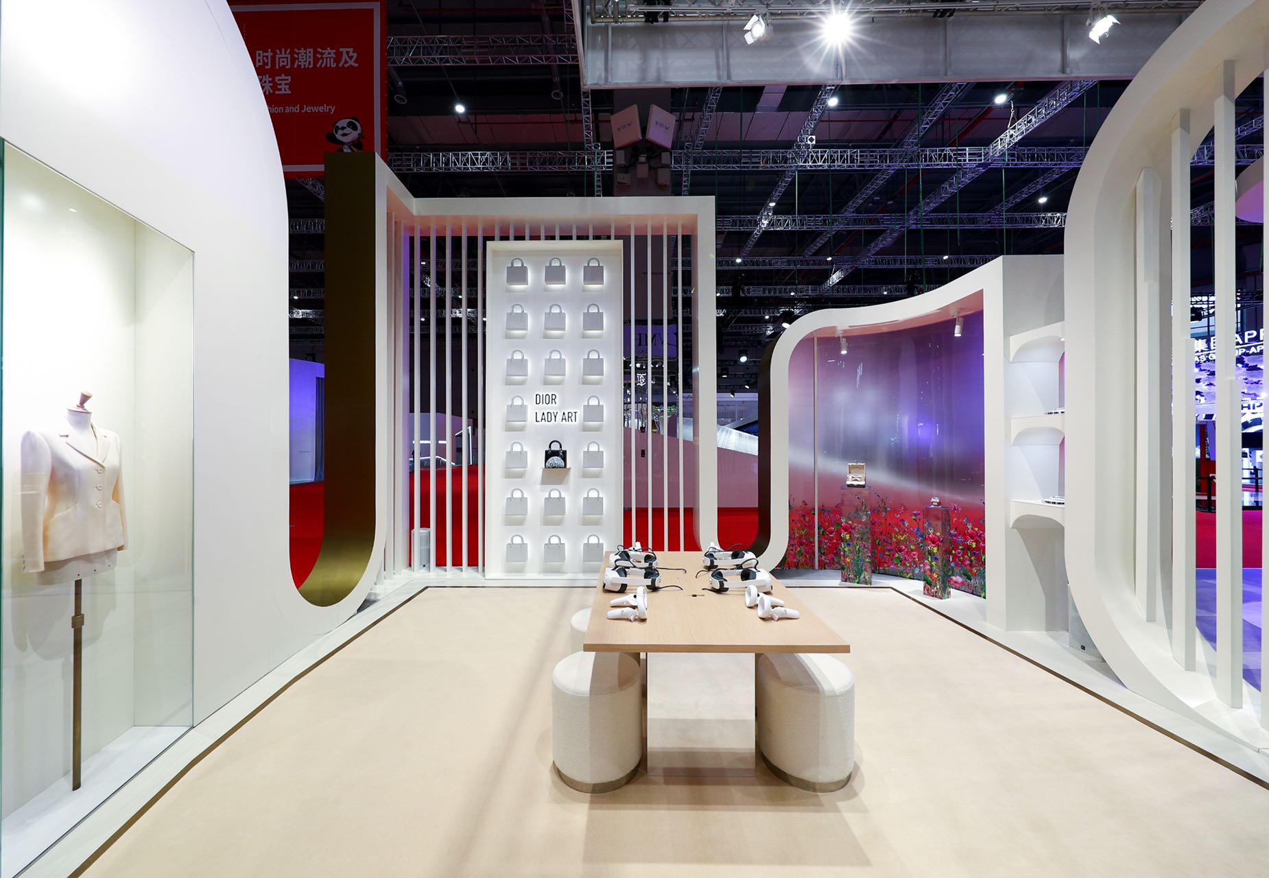 从品牌创始人克里斯汀•迪奥先生(CHRISTIAN DIOR)到现任女装创意总监玛丽亚•嘉茜娅•蔻丽女士(MARIA GRAZIA CHIURI),迪奥历任创意总监不断以设计杰作致敬世界多元文化,在这场延绵至今的对话中,处处流露出对中国文化的美好情怀与记忆。多年来,迪奥持续关注和支持中国艺术家,并与之携手展开多次合作。在本届中国国际进口博览会中,迪奥展区甄选迪奥套装(BAR JACKET)与 LADY DIOR手袋等经典之作,生动展示纷呈浩瀚的迪奥世界。其中,一款由中国艺术家王郁洋为“DIOR LADY ART #7”限量合作系列所创作的手袋,在本届博览会中首度与观众见面,出自艺术家之手的杰作,令人心驰神往。在同一展区内,迪奥以虚拟沉浸式科技手段,在品牌位于巴黎蒙田大道三十号的传奇殿堂,开启通往“梦之国度”的探索之旅。