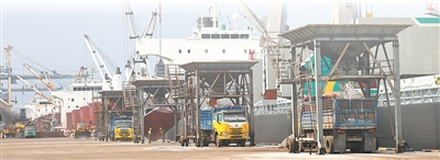 关丹港码头,卸船机正在作业。 本报记者 白元琪摄