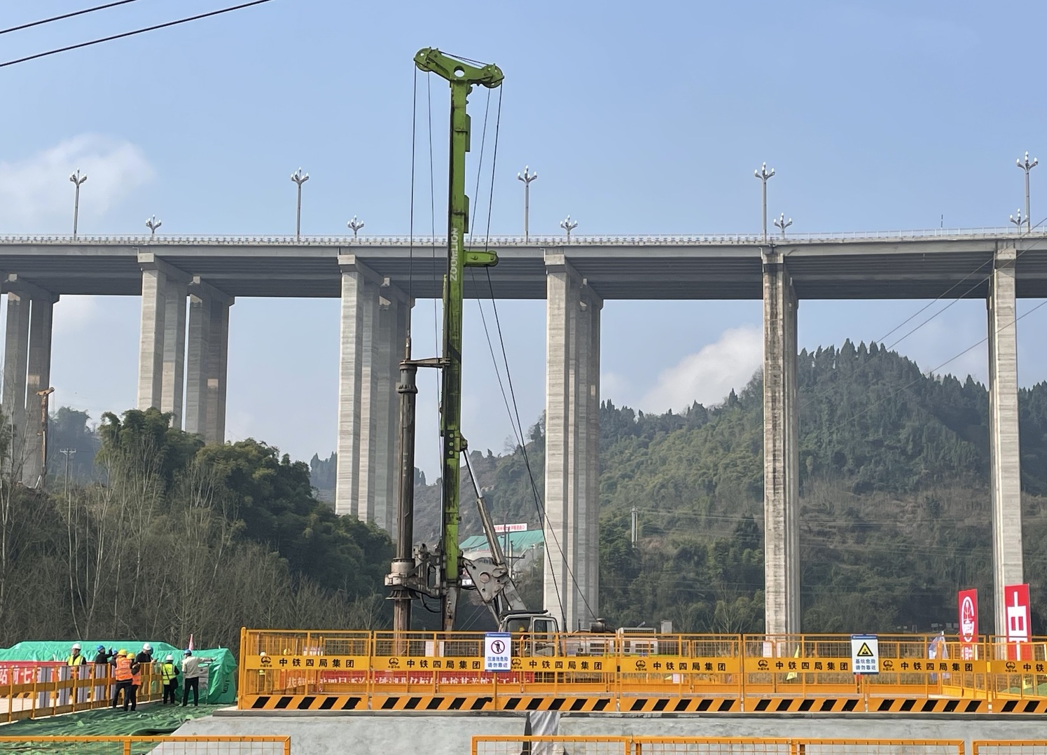 京昆高速铁路西昆有限公司达州指挥部总工程师王君楼介绍,参建单位进场2个月以来,西渝高铁四川段各工点大型临时工程已基本完成,正线桥梁、隧道工程均进入实质性施工阶段,全线控制性工程华蓥山隧道正在进行超前管棚施工,简车坝特大桥首个承台也于日前浇筑完成。