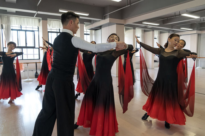 在成都市锦江区喜树路社区,居民在老年课堂上舞蹈课(4月26日摄)。新华社记者 唐文豪 摄