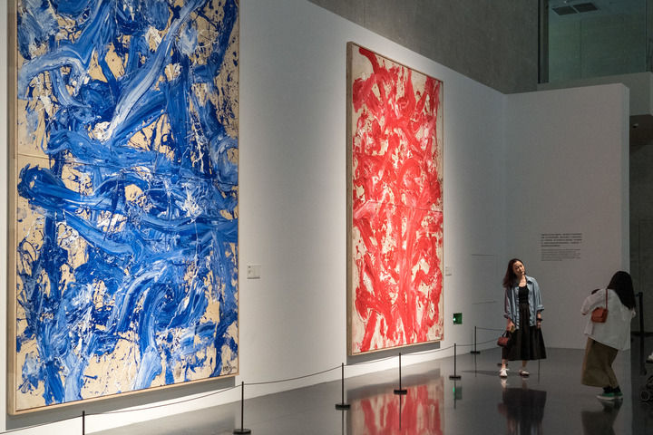 在成都市金牛区天府艺术公园,市民在美术馆内观展拍照(4月26日摄)。新华社记者 唐文豪 摄