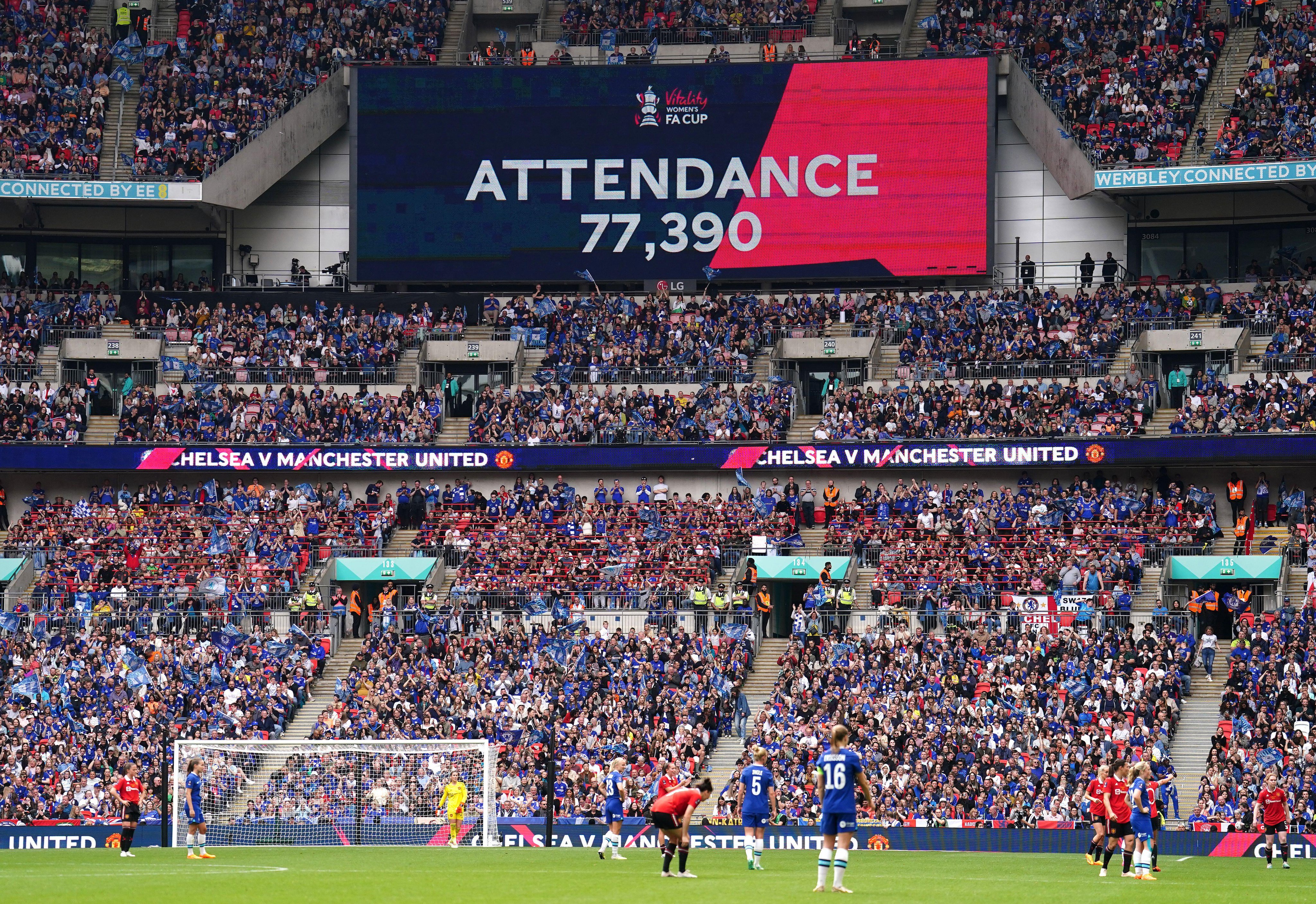 77390名观众入场观看切尔西与曼联的英格兰女子足总杯决赛。